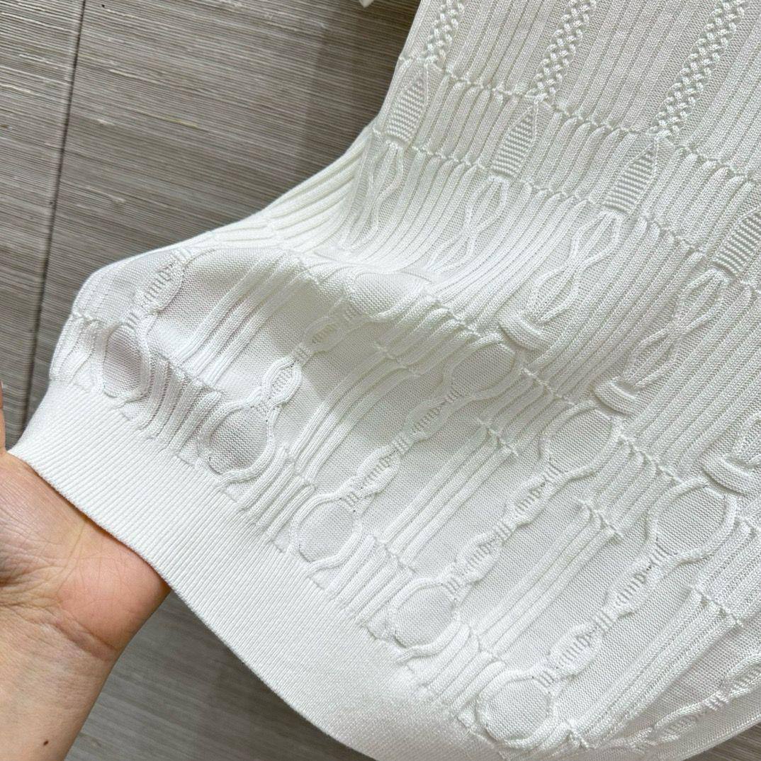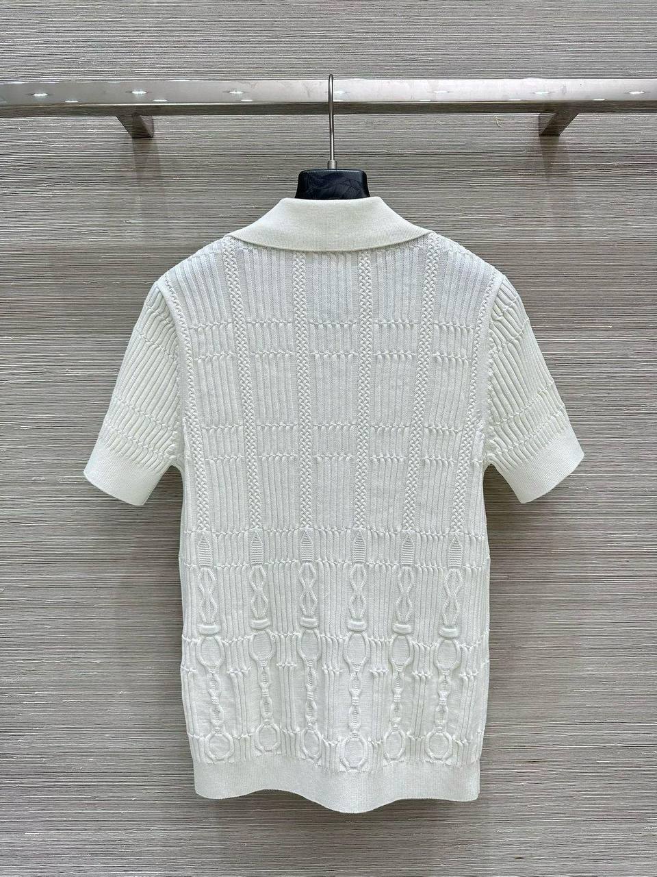 Поло Hermes LUX-115731 — это элегантная трикотажная рубашка поло белого цвета с короткими рукавами. Дизайн включает в себя текстурированный узор, который добавляет изысканности и стиля. Она идеально подходит для создания повседневных и изысканных образов, обеспечивая комфорт и элегантность.
