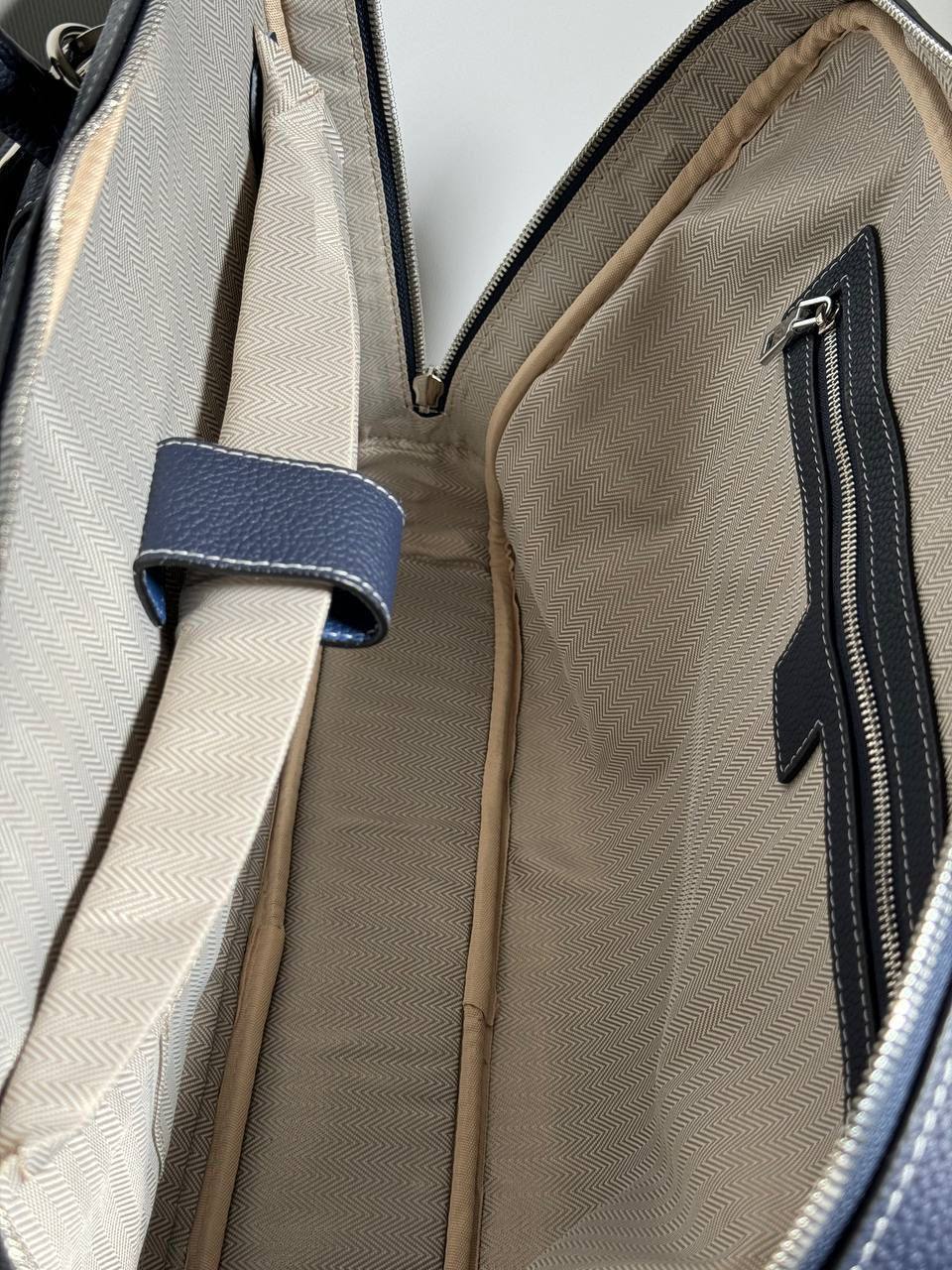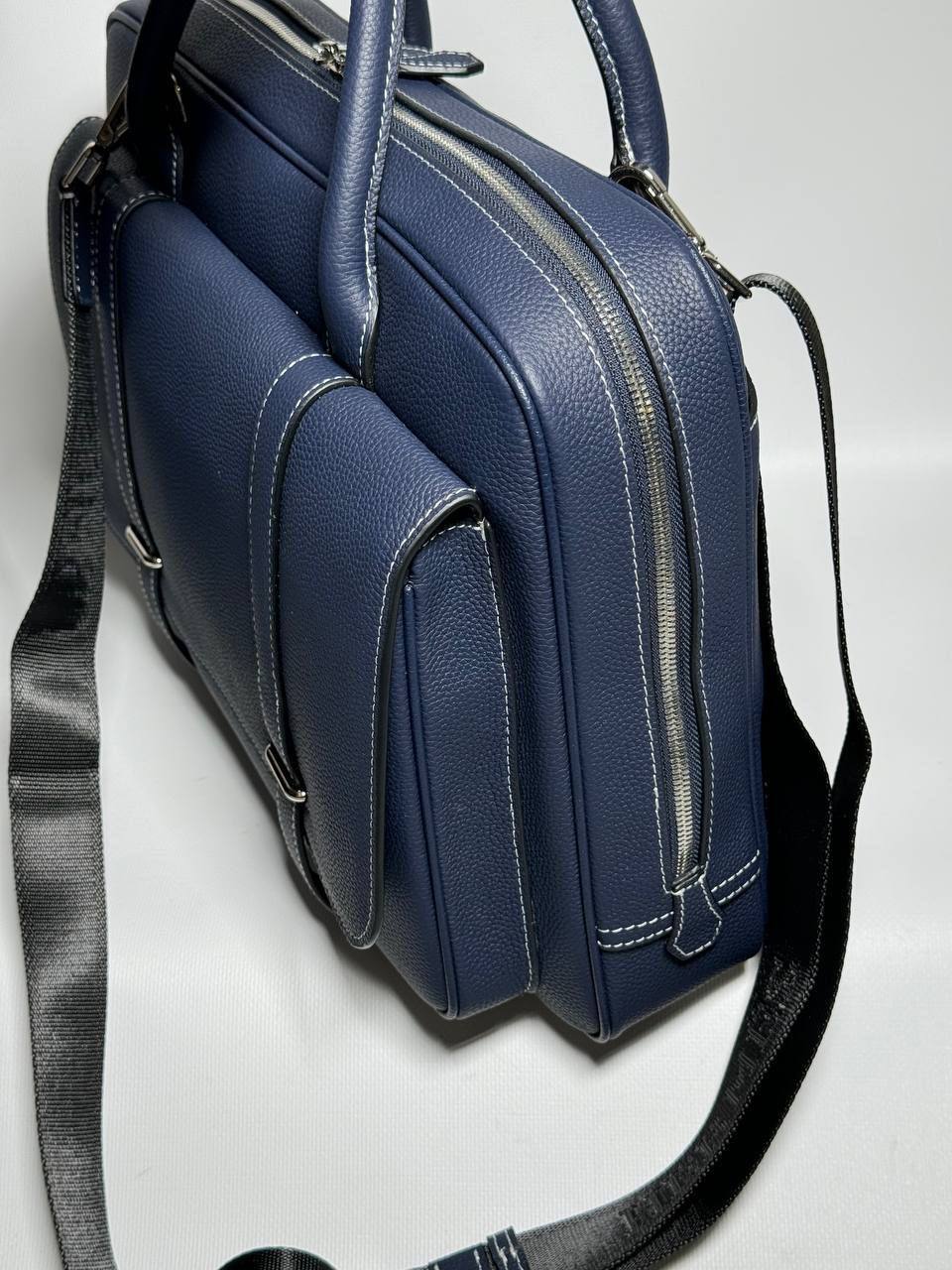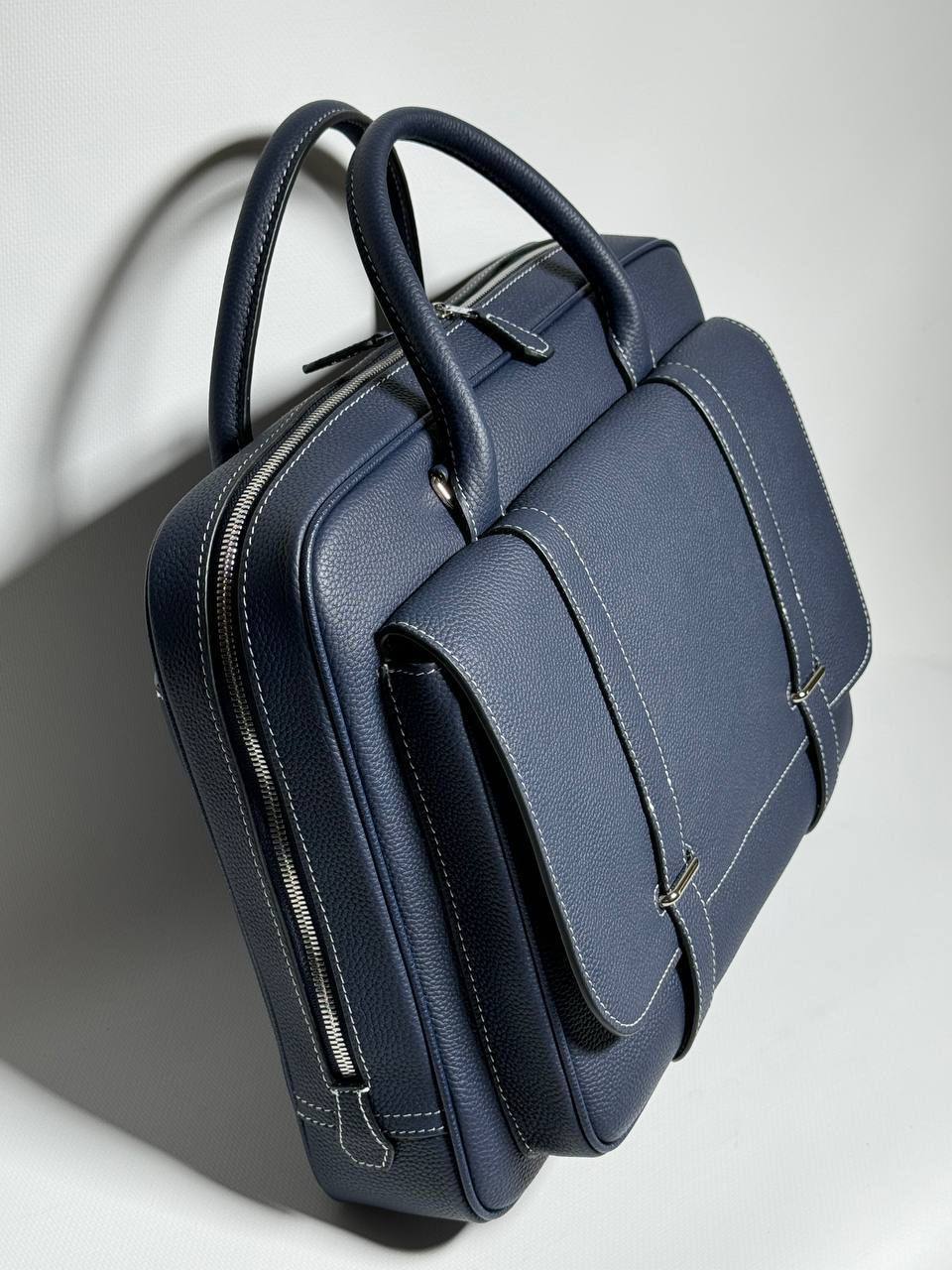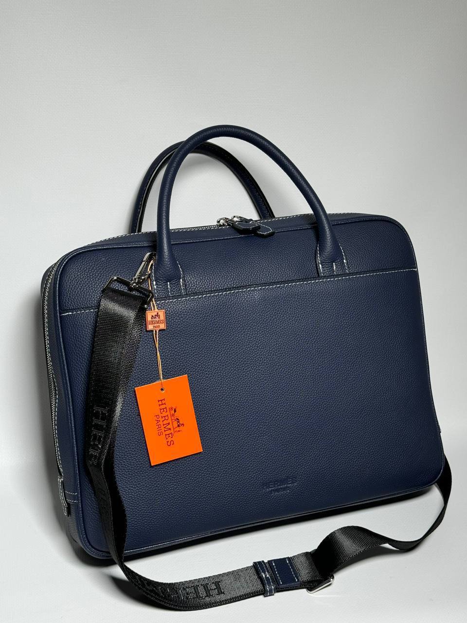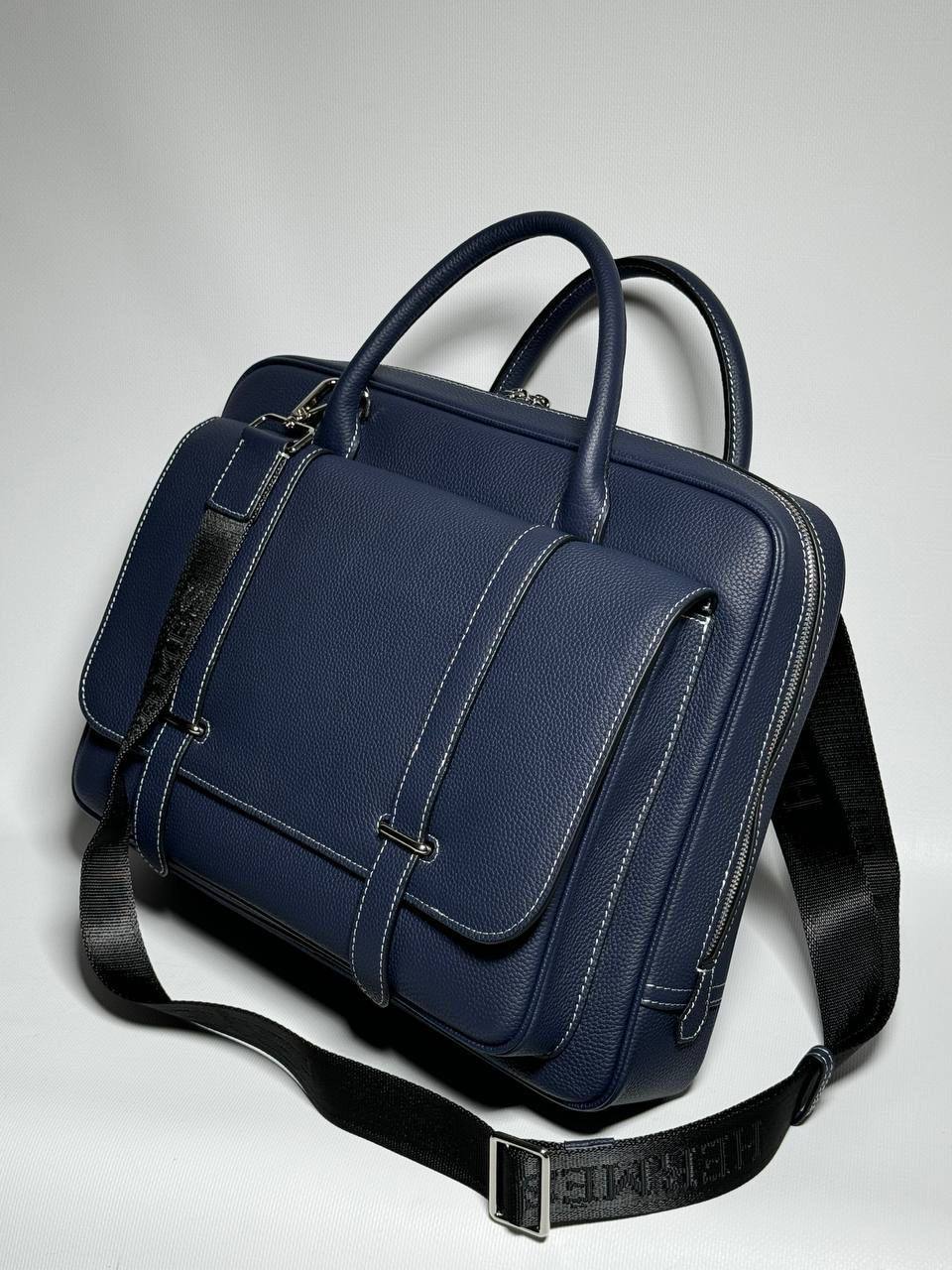 Портфель Hermes LUX-110686 — это стильный аксессуар, который сочетает в себе элегантность и функциональность. Этот темно-синий портфель отличается лаконичным дизайном, текстурированной поверхностью и белой строчкой, придающей ему изысканный вид. Он идеально подходит для деловых встреч, работы или повседневного использования, обеспечивая удобство и надежность.