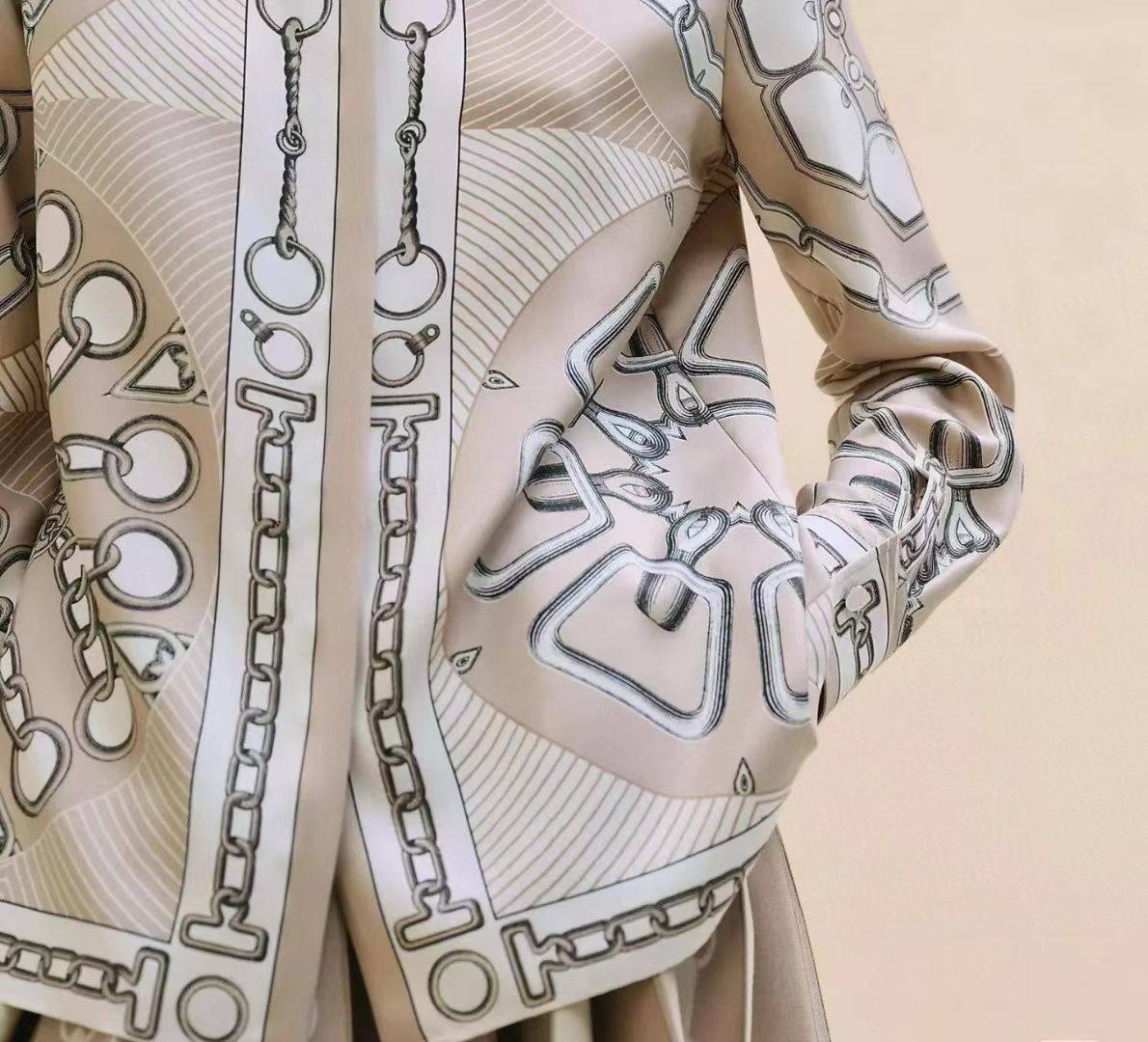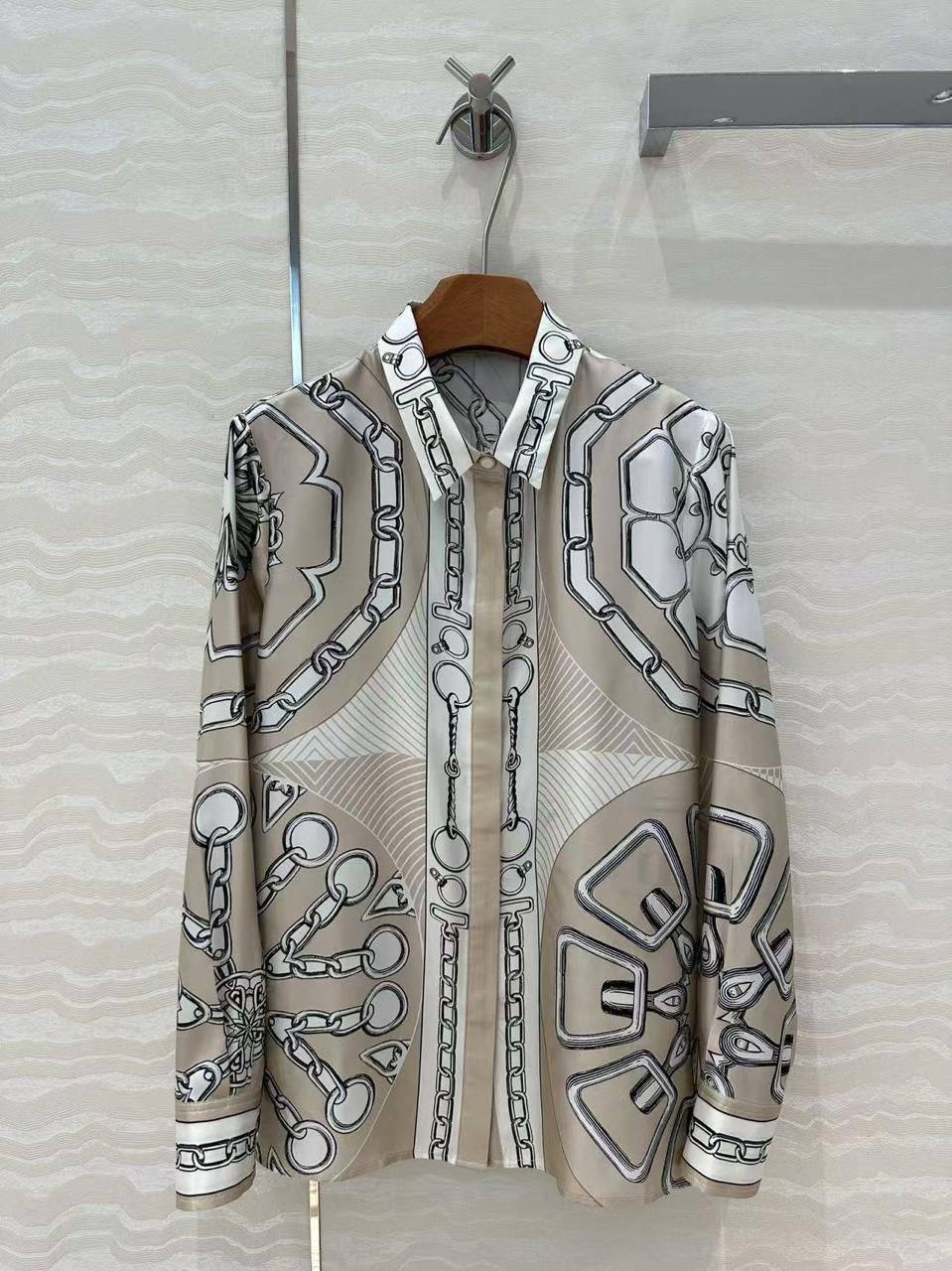 Рубашка Hermes LUX-117827 - это воплощение элегантности и изысканности. Рубашка выполнена в классическом стиле с оригинальным принтом в спокойных тонах. Она идеально подходит для создания стильных образов, подчеркивая индивидуальность и безупречный вкус.