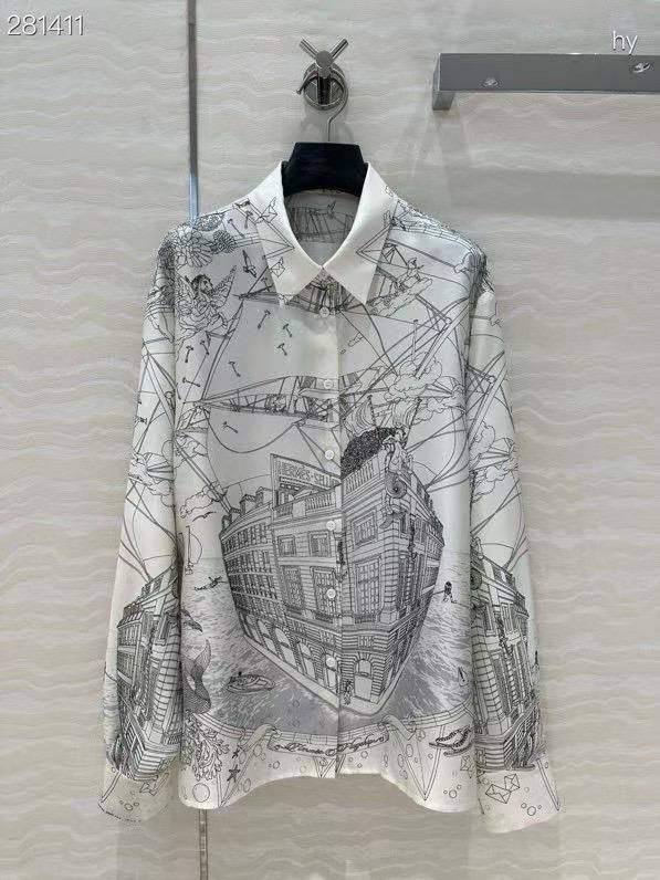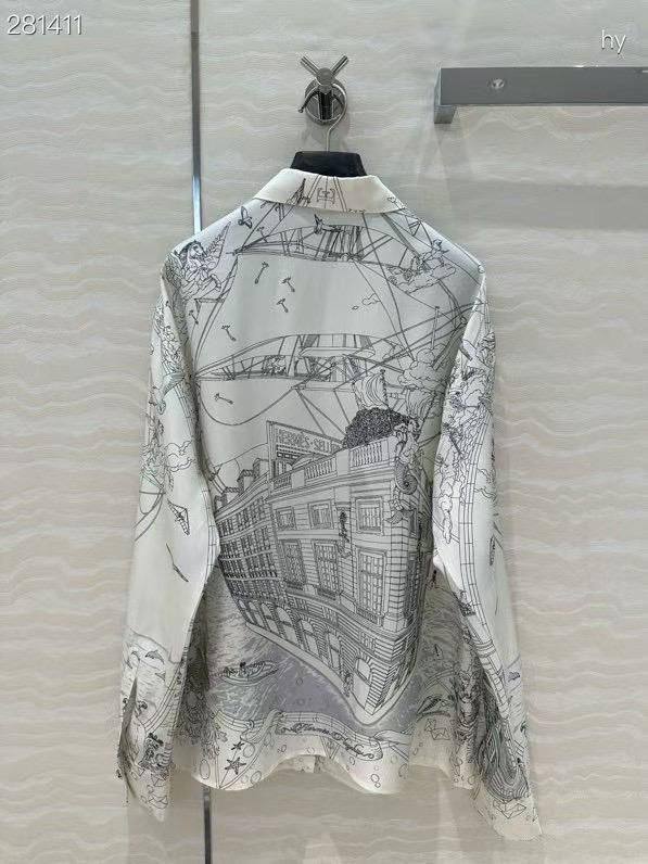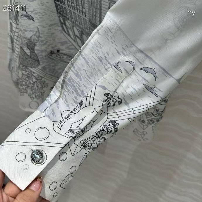 Рубашка Hermes LUX-115815 – это изысканное сочетание стиля и элегантности. Представленная рубашка выполнена в классическом стиле, с утонченным принтом, изображающим городской пейзаж. Белый цвет фона гармонично сочетается с графичным рисунком, делая рубашку идеальным выбором для различных случаев.