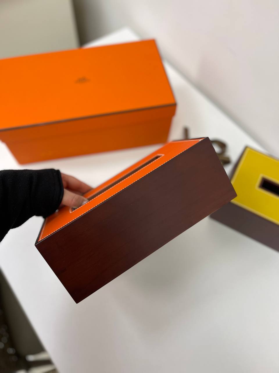 Hermes Салфетница 25х14х9см LUX-82794 — это изысканный аксессуар, который сочетает в себе функциональность и роскошь. Салфетница выполнена в оранжевом цвете с черным прямоугольным отверстием, гармонично дополняя любой интерьер. Идеальна для хранения и подачи салфеток, придавая элегантность и утонченность.