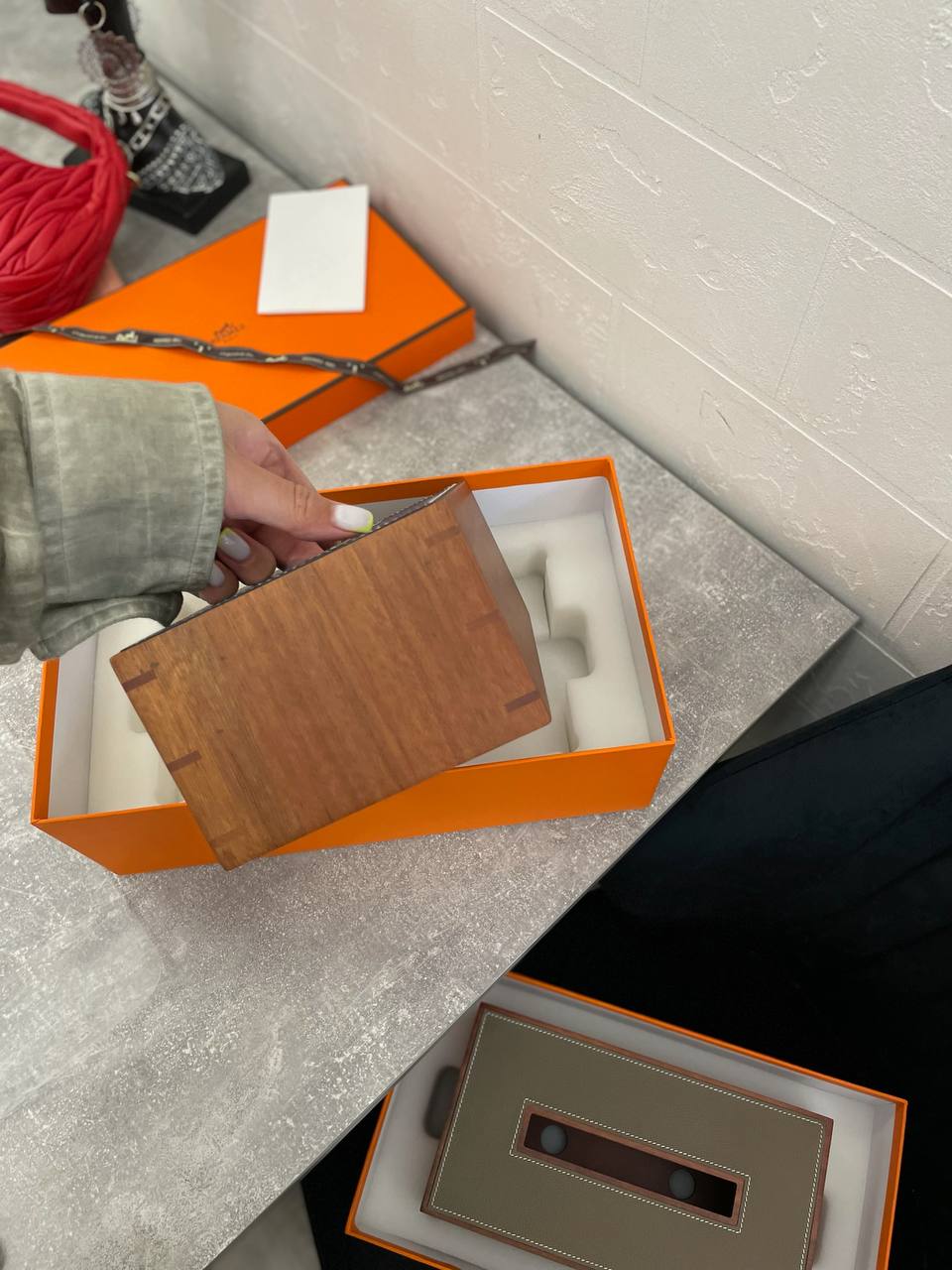 Салфетница 25х14х9см Hermes LUX-107871, представленная на изображении, — это элегантный аксессуар для дома. Дизайн салфетницы выполнен в классическом стиле, сочетающем благородный синий цвет, светлую строчку по периметру и элементы дерева. Она идеально подойдет для хранения салфеток на столе или в ванной комнате.