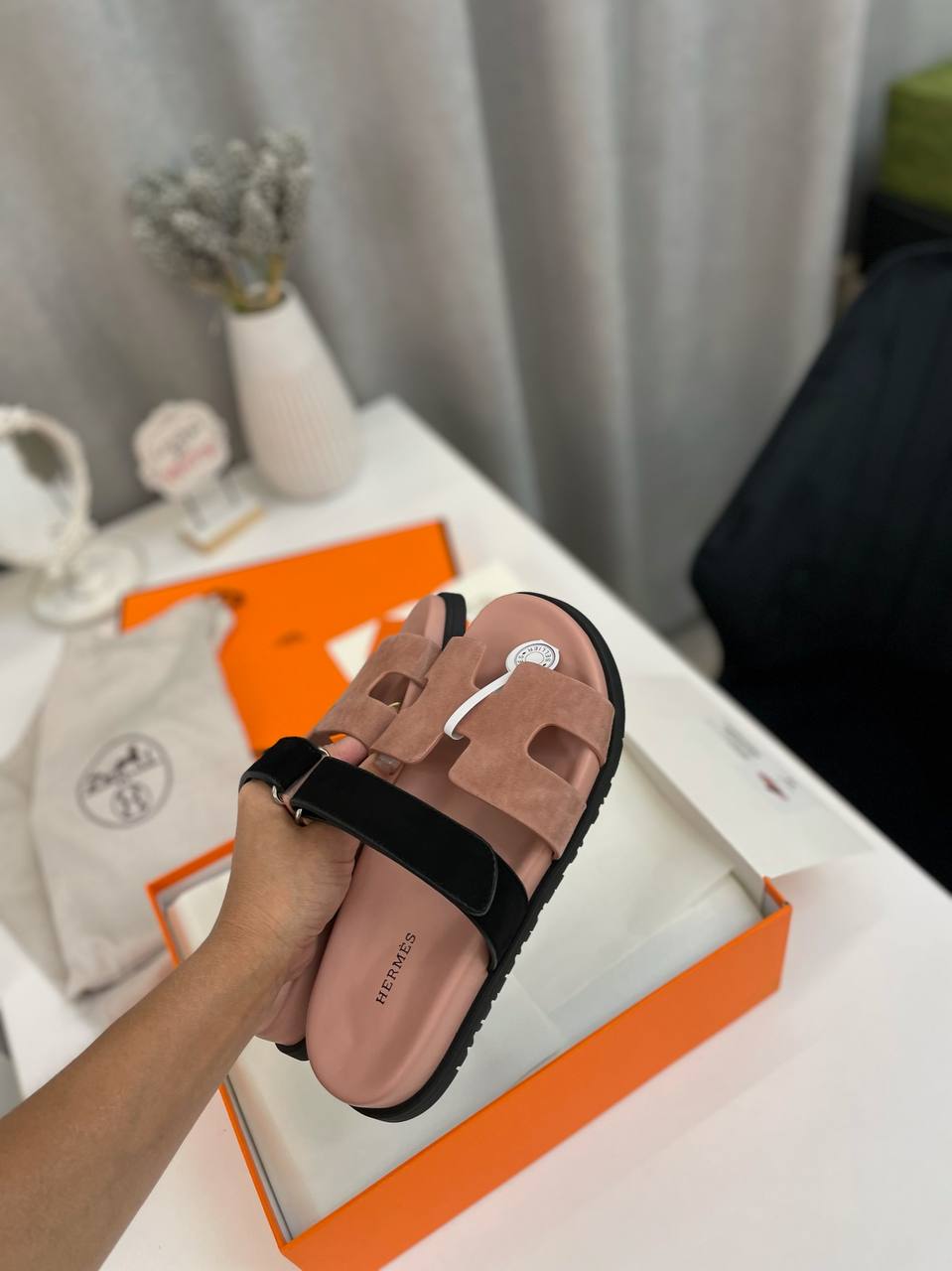 Сандалии Hermes LUX-94684 представляют собой стильную летнюю обувь, сочетающую в себе элегантность и комфорт. Нежно-розовый цвет в сочетании с черными деталями создает изысканный вид. Сандалии идеально подойдут для повседневной носки, добавляя образу нотку роскоши.