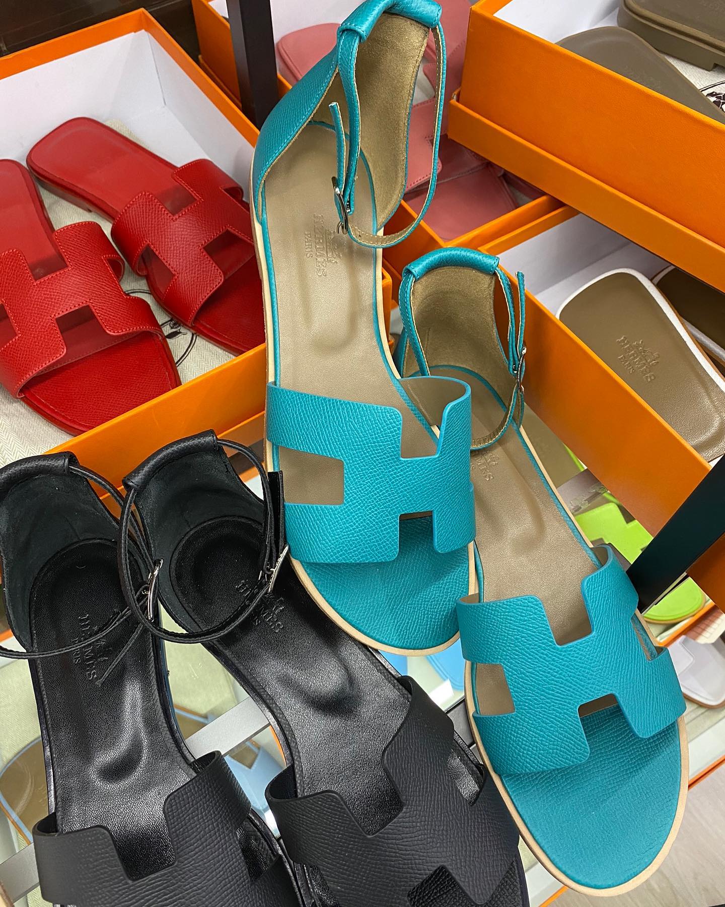 Эти элегантные сандалии Hermes LUX-32947, выполненные в ярком бирюзовом цвете, станут идеальным дополнением к вашему летнему гардеробу. Дизайн с узнаваемым "H" от Hermes и ремешком вокруг щиколотки придает им изысканность. Они идеально подходят для создания как повседневных, так и более нарядных образов.
