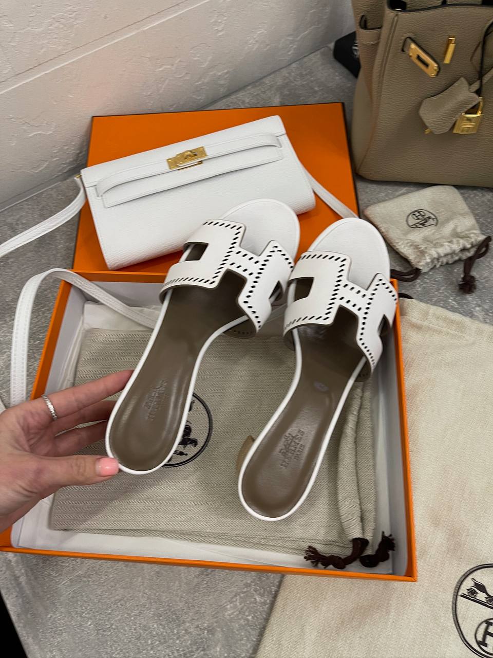 Сандалии Hermes LUX-105463 — это воплощение элегантности и изысканности. Белые сандалии с контрастной черной строчкой вокруг вырезов выглядят стильно и актуально. Подошва выполнена из комбинации материалов, обеспечивая комфорт при носке.