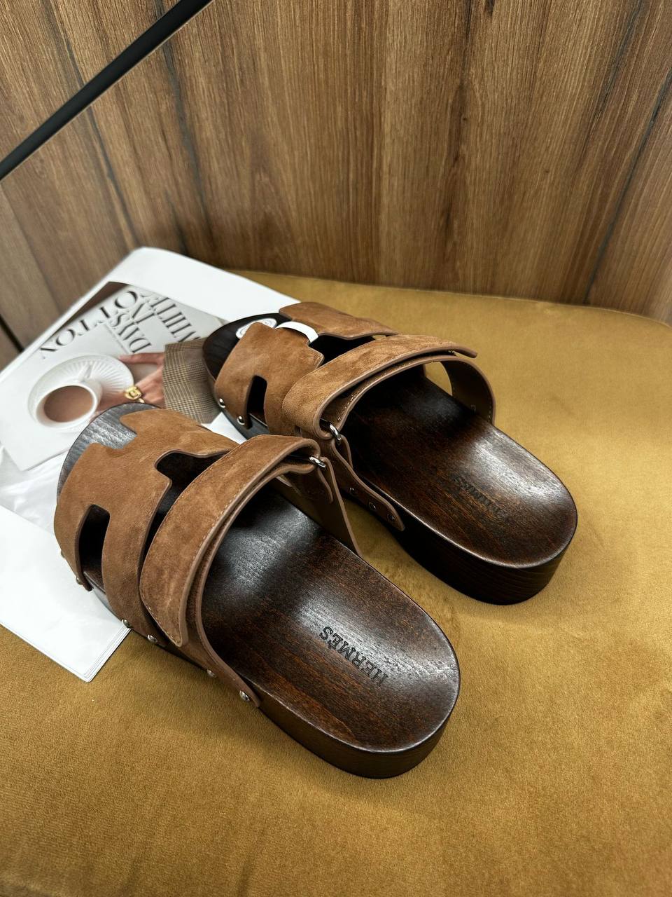 Сандалии Hermes LUX-117755 – это стильная летняя обувь, выполненная в минималистичном дизайне. Сандалии выполнены в коричневом цвете с замшевыми ремешками. Идеально подойдут для повседневной носки в жаркие дни.
