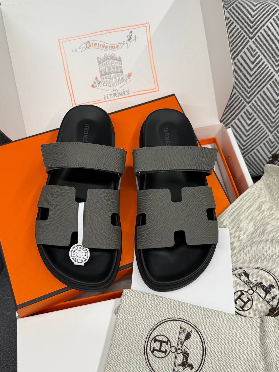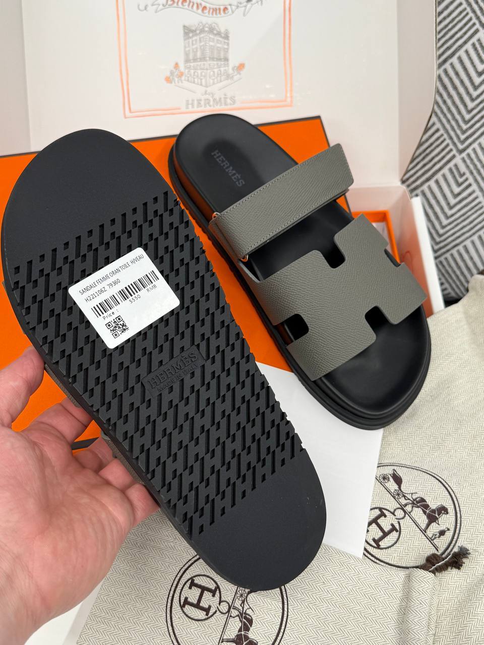 Сандалии Hermes LUX-118950 представляют собой воплощение летней элегантности и комфорта. Эта модель выполнена в классическом стиле с акцентом на минимализм и узнаваемый дизайн бренда. Серый цвет верха контрастирует с черной подошвой, создавая стильный и универсальный образ, который подойдет для различных случаев.