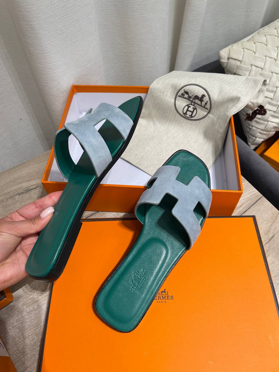 Сандалии Hermes LUX-120015 представляют собой элегантную летнюю обувь. Сандалии выполнены в фирменном стиле Hermes, сочетают в себе простоту и изысканность. Зеленая стелька контрастирует с голубыми перемычками, создавая свежий летний образ.