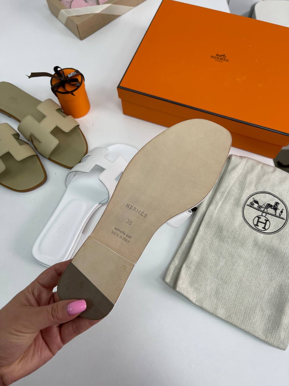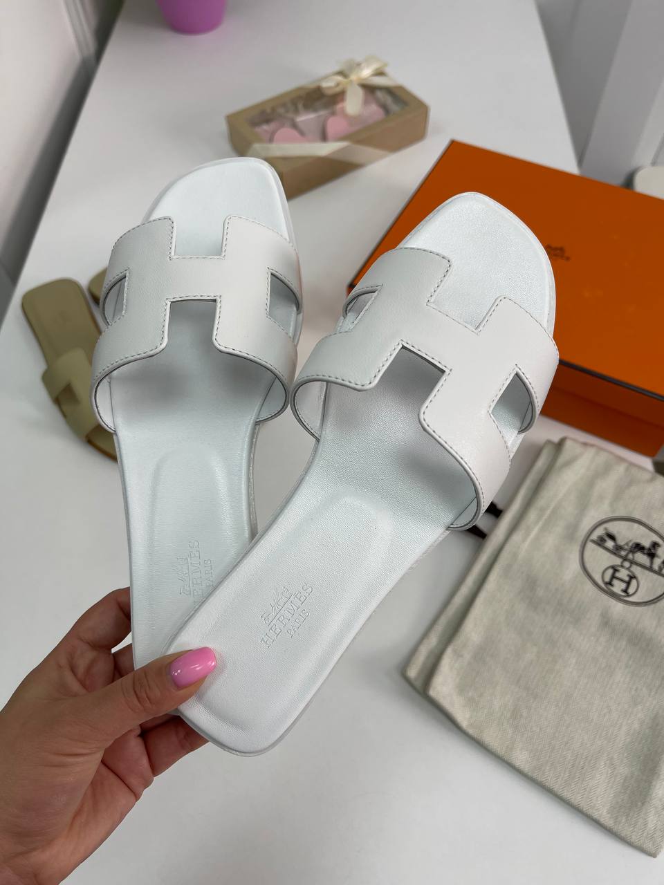 Сандалии Hermes LUX-86227 — это воплощение изысканности и комфорта. Белые кожаные сандалии с культовой буквой "H" на перемычке, создают элегантный и узнаваемый образ. Эти сандалии станут идеальным дополнением к летнему гардеробу, сочетая в себе стиль и практичность.