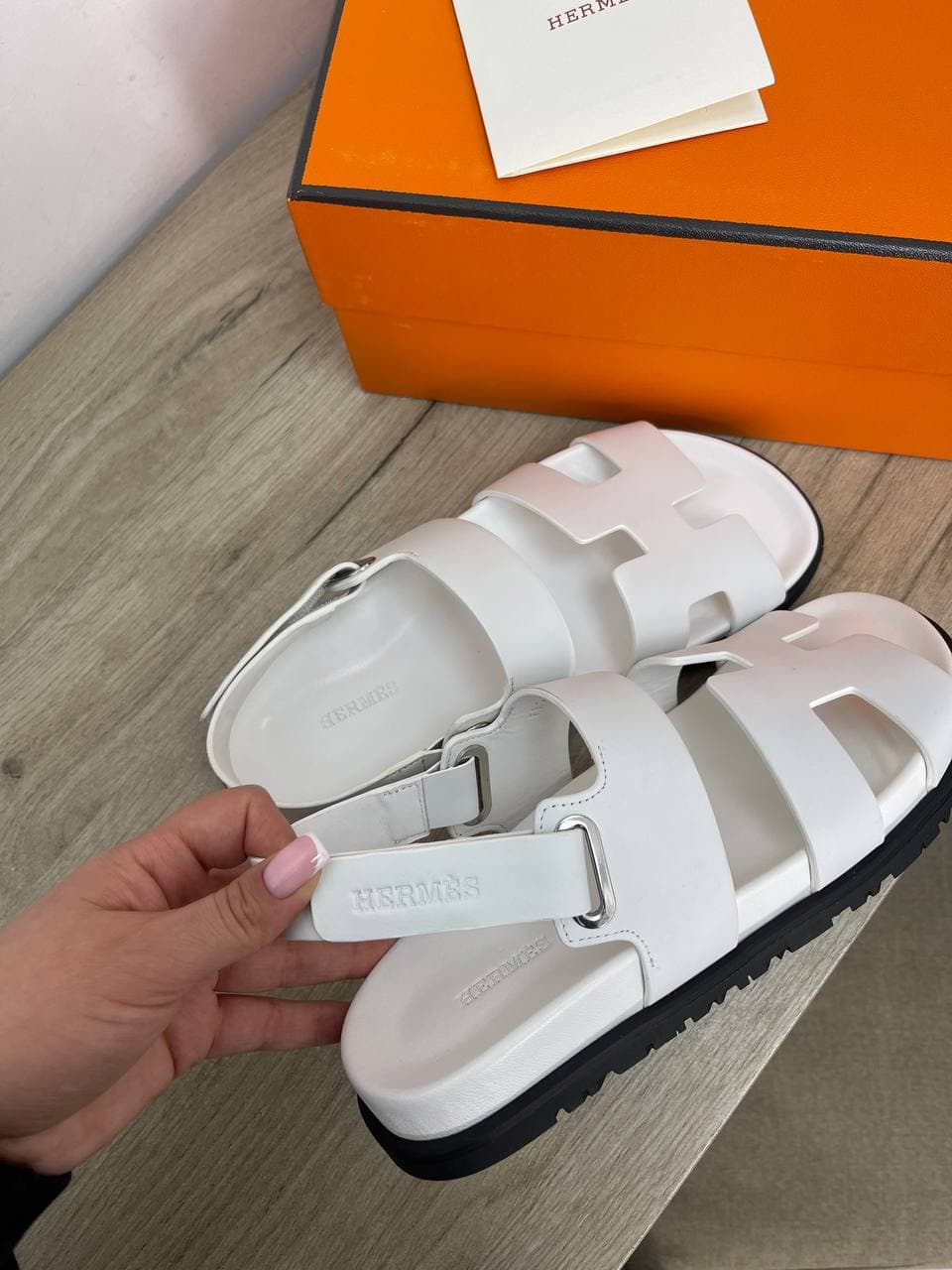 Элегантные белые сандалии Hermes LUX-63054 — это сочетание классического дизайна и современного комфорта. Модель отличается узнаваемым брендовым стилем, представленная в универсальном белом цвете, который легко впишется в любой летний гардероб. Эти сандалии идеально подойдут для создания расслабленных, но стильных образов.
