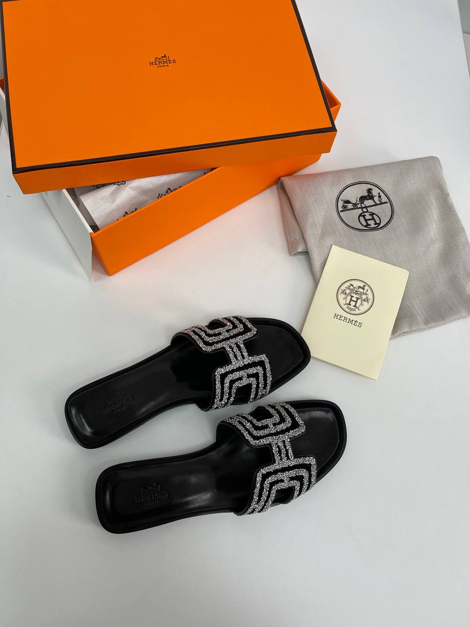 Сандалии Hermes LUX-68320 представлены в элегантном черном цвете, украшенные сверкающими деталями. Эти стильные шлепанцы идеально подходят для создания изысканных летних образов, добавляя нотку роскоши любому наряду. Их дизайн отражает классическую эстетику бренда Hermes, известного своим безупречным качеством и вниманием к деталям.