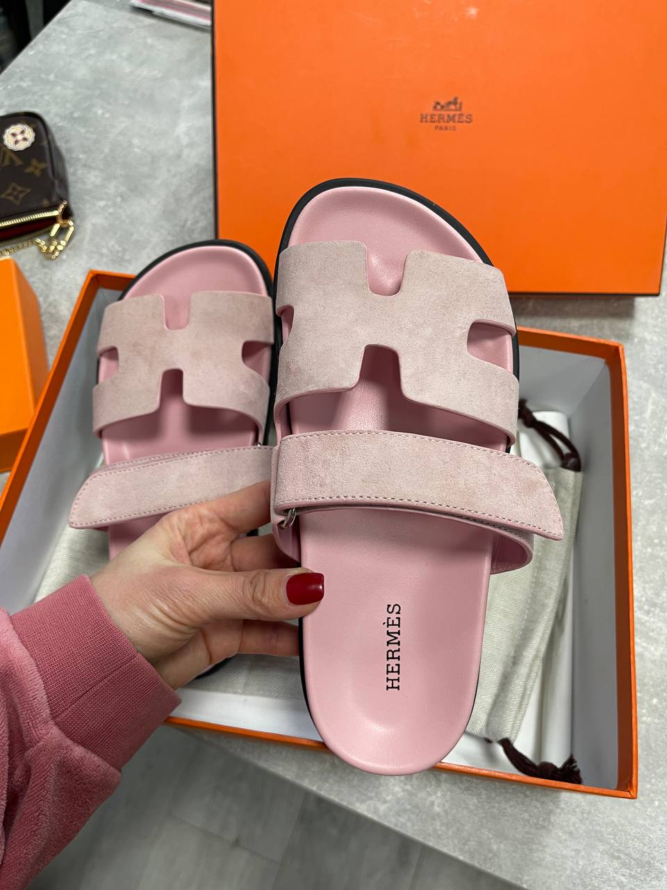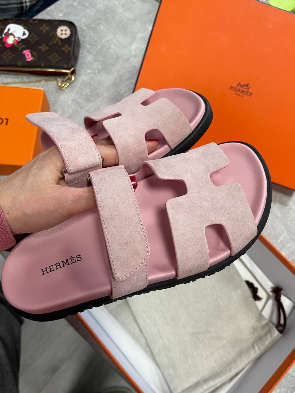 Сандалии Chypre Sandal Hermes LUX-117118 – это стильная летняя обувь. Сандалии выполнены в нежно-розовом цвете, с характерным дизайном в виде буквы «H». Они подойдут для повседневной носки, добавляя образу элегантность и комфорт.