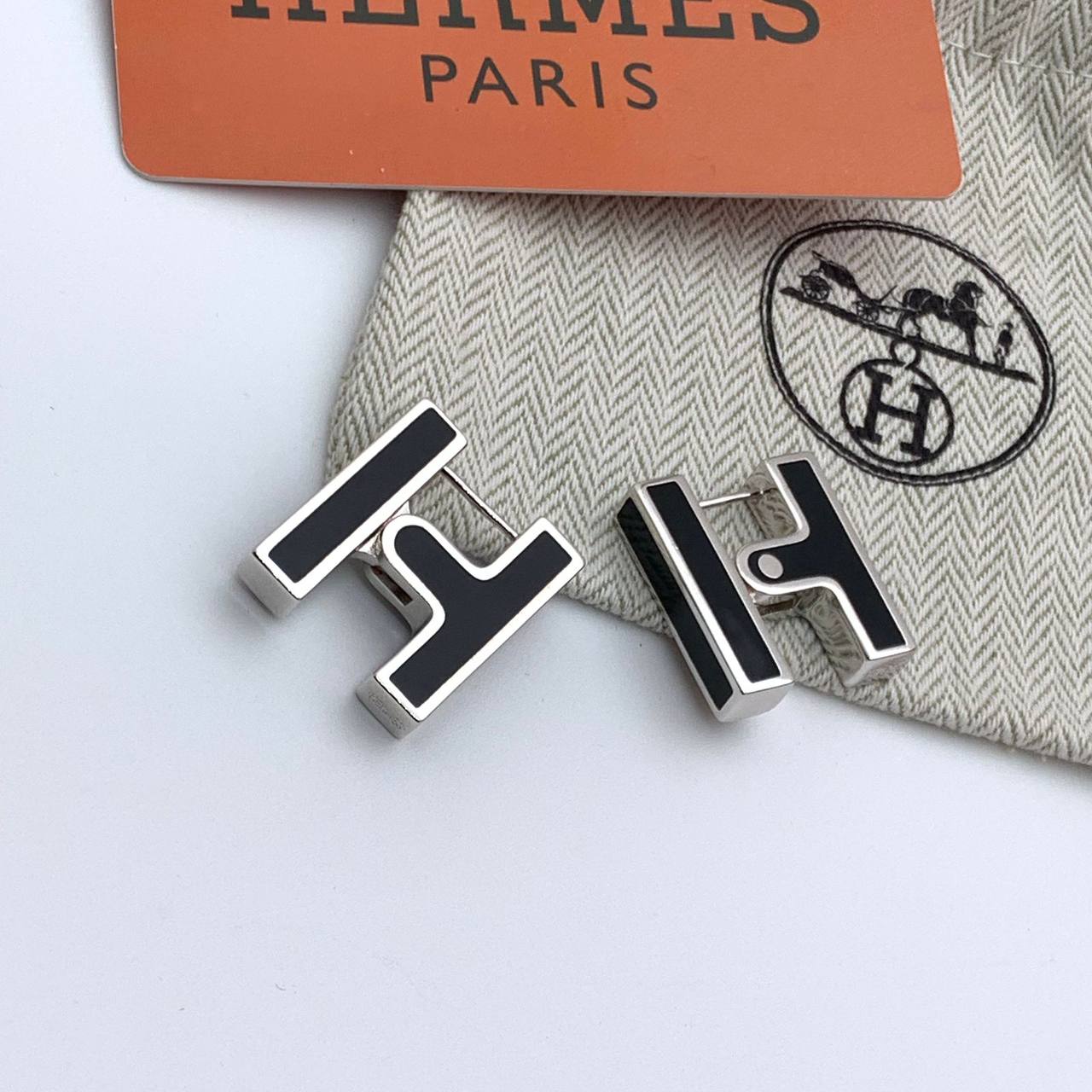 Серьги Hermes LUX-114191, представленные на изображении, являются воплощением элегантности и современного стиля. Эти серьги выполнены в минималистичном дизайне, где преобладают прямые линии и лаконичные формы. Чёрный цвет в сочетании с серебристым создаёт эффектный контраст, делая аксессуар заметным, но не вызывающим.