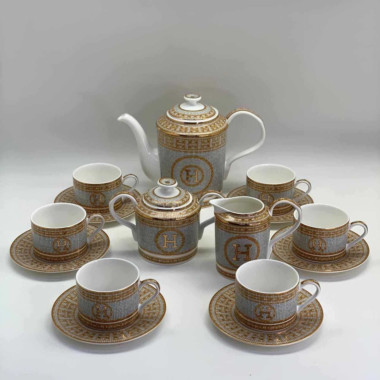 Элегантный чайный сервиз Hermes LUX-63757, выполненный в изысканном стиле, украсит любое чаепитие, добавив ему нотку роскоши. Комплект идеально подойдет для создания особой атмосферы и станет прекрасным подарком.