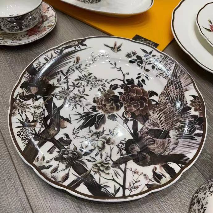 Сервиз столовый 38 предметов Hermes LUX-101962 — изысканный столовый сервиз, который сочетает в себе элегантность и функциональность. Черно-белый цветочный узор придает сервизу утонченный вид, а изящные формы тарелок и блюдец подчеркивают его благородное происхождение. Предметы сервиза идеально подойдут для сервировки как повседневного стола, так и для торжественных мероприятий.