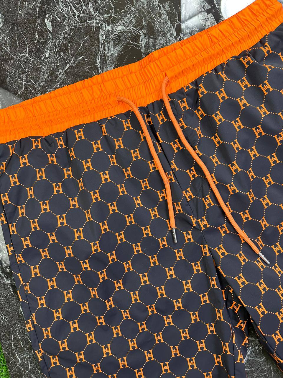 Шорты Hermes Shorty 15 LUX-86621 представляют собой стильный элемент гардероба. Шорты выполнены в темно-синем цвете с оранжевым поясом и узором с монограммой. Они идеально подойдут для создания как повседневных, так и пляжных образов, добавляя в них нотку роскоши.