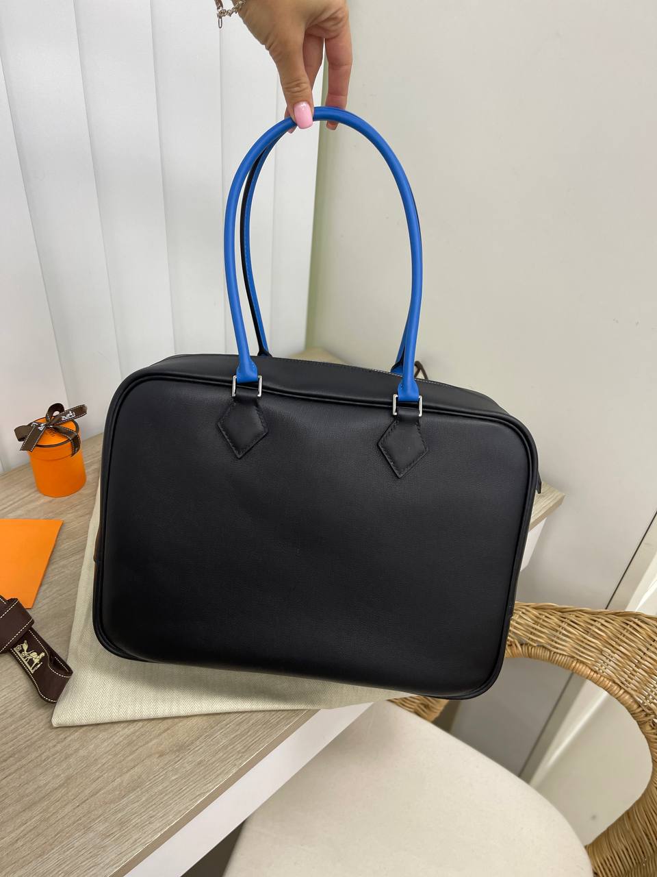Сумка женская Hermes LUX-79265 – элегантная модель в классическом стиле. Черный корпус с контрастными синими ручками создает стильный и запоминающийся образ. Эта сумка подойдет для повседневного использования, подчеркивая утонченный вкус своей обладательницы.