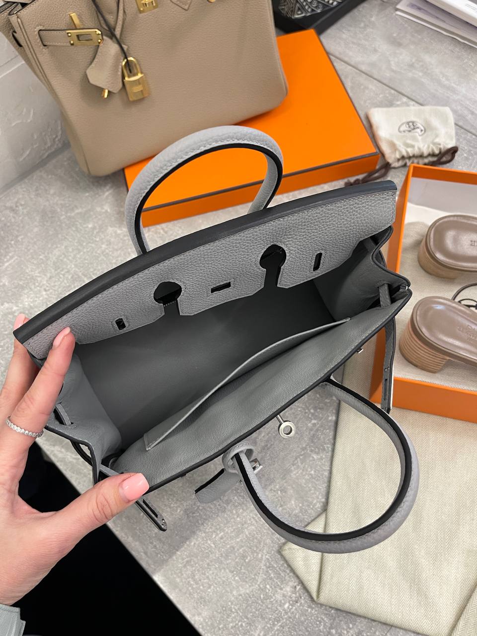 Сумка женская Birkin 25 cm Hermes LUX-105410 - это воплощение элегантности и роскоши от знаменитого бренда. Серо-голубой оттенок сумки в сочетании с классическим дизайном делает ее идеальным аксессуаром для любого случая. Она сочетает в себе изысканный стиль и практичность, позволяя вам выглядеть безупречно в любой обстановке.