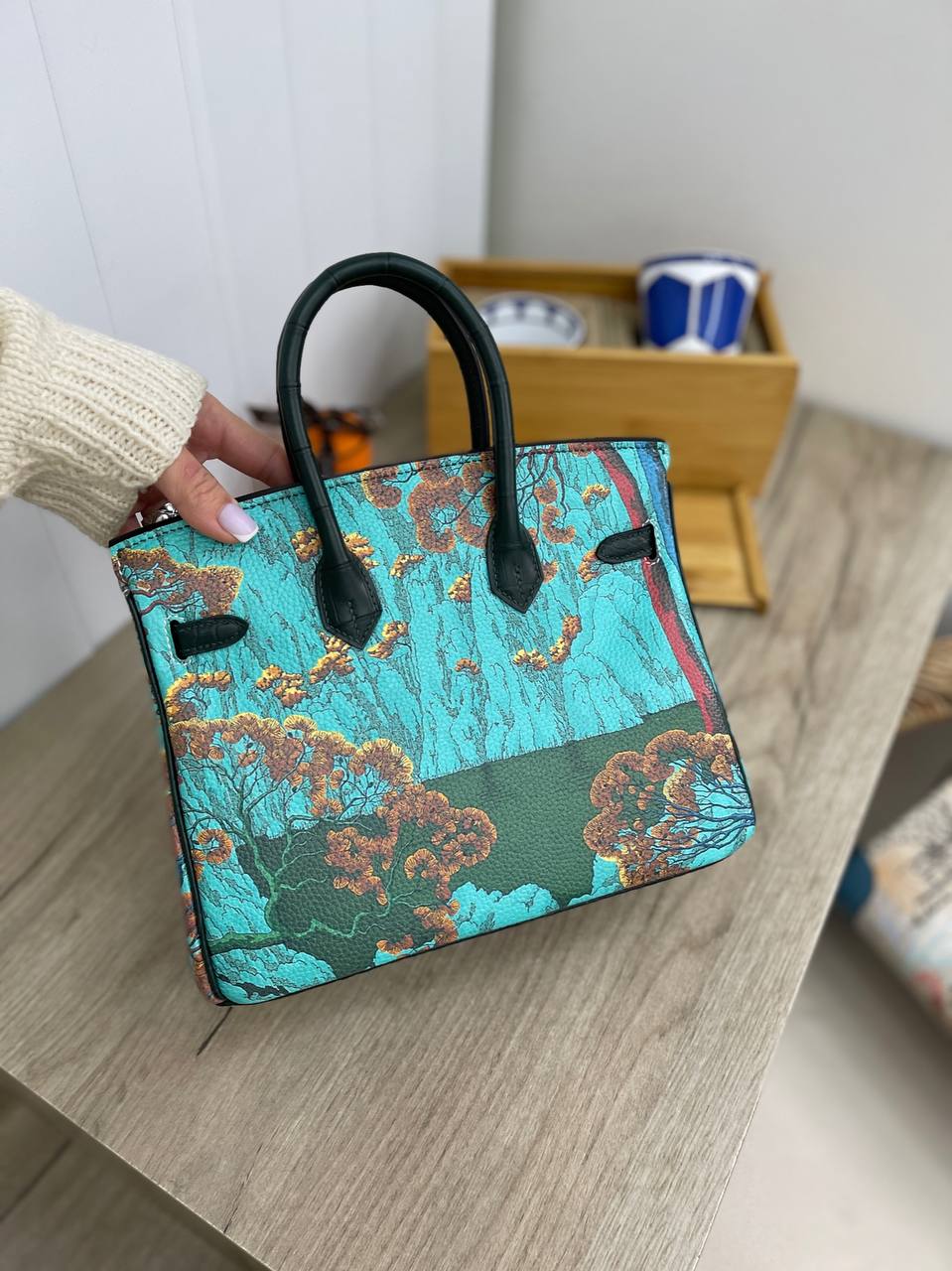 Сумка женская Birkin 25 cm Hermes LUX-105239 — роскошная сумка от известного бренда, выполненная в классическом стиле. Она имеет темно-зеленый цвет крышки с текстурой кожи рептилии и ярким принтом тигра на передней части сумки. Эта сумка станет прекрасным дополнением к вашему образу, подчеркивая вашу индивидуальность и вкус.