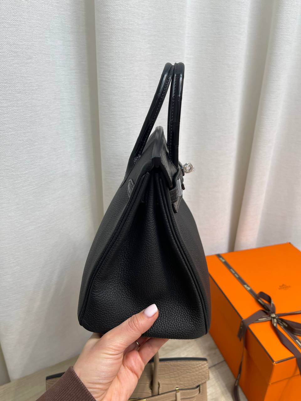 Стильная женская сумка Birkin от Hermes – это воплощение роскоши и элегантности. Сумка имеет лаконичный дизайн и безупречное исполнение.