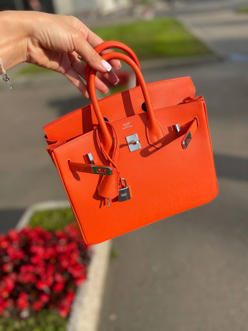 Сумка женская Birkin, 25 cm Madame Leather Hermes LUX-93915 - воплощение элегантности и стиля. Яркий оранжевый цвет придает сумке выразительность, а текстура кожи создает ощущение роскоши. Эта сумка станет прекрасным дополнением к любому образу.