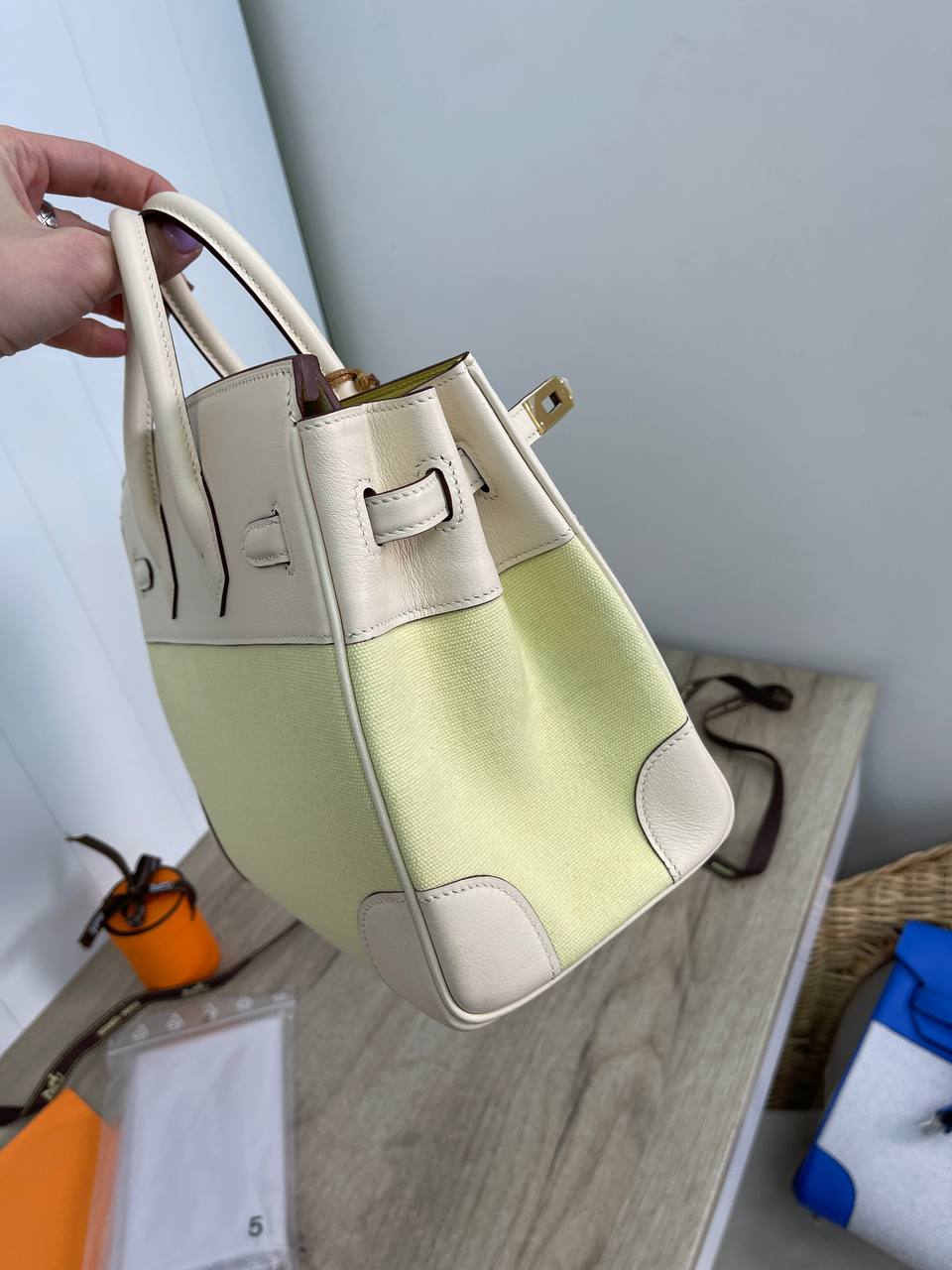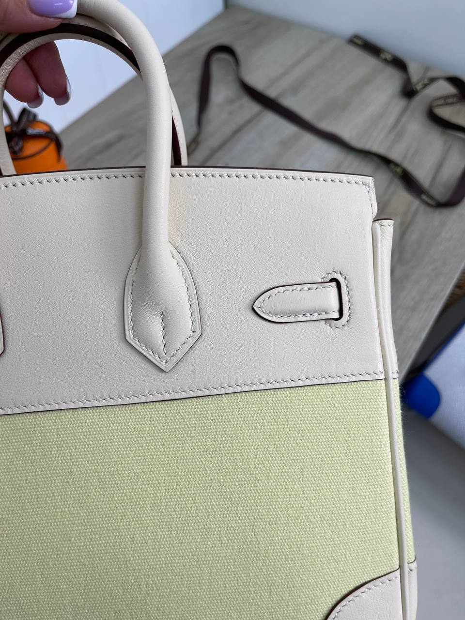 Сумка женская Birkin 25 GHW Hermes LUX-88645 – это изысканный аксессуар, сочетающий в себе классику и современность. Сумка выполнена в элегантном дизайне, сочетая кремовый цвет с нежно-зеленым. Этот аксессуар станет отличным дополнением к повседневному или вечернему образу.