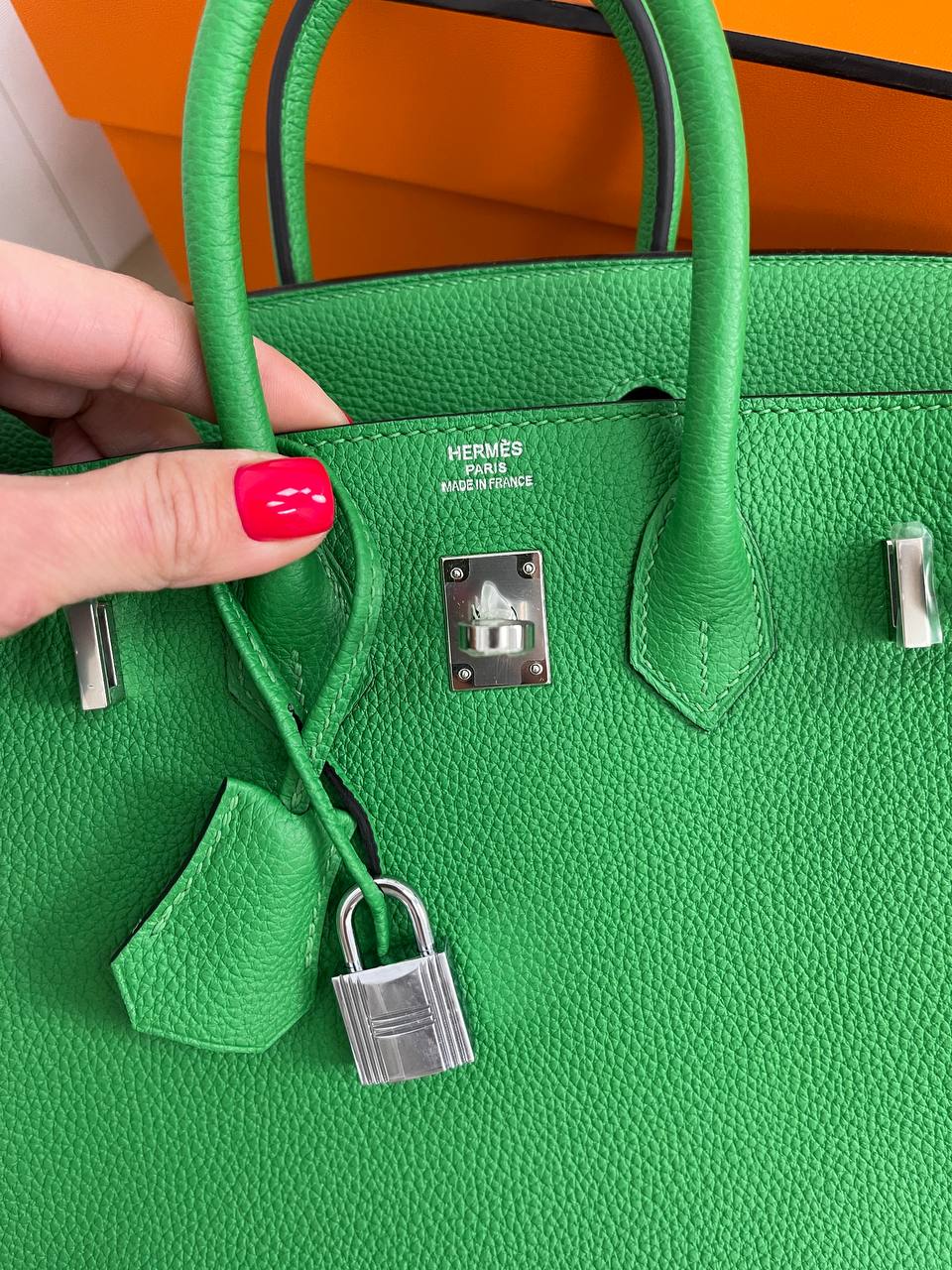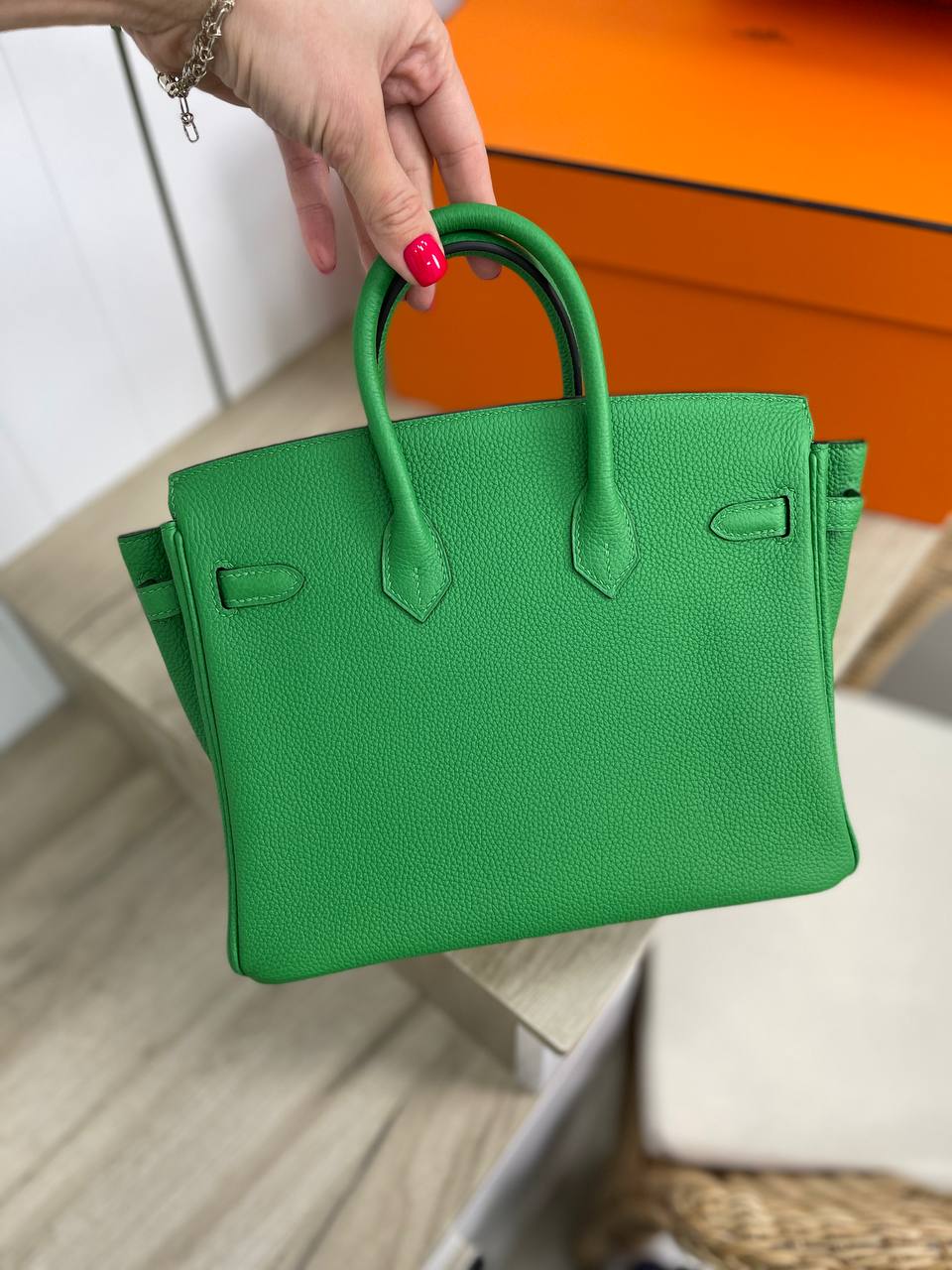 Сумка женская Birkin 25, GHW Togo, LUX-89313 от Hermes — это воплощение элегантности и роскоши. Ярко-зеленый цвет и текстурированная кожа Togo создают привлекательный внешний вид. Сумка идеально подходит для повседневного использования, подчеркивая статус и безупречный вкус своей владелицы.