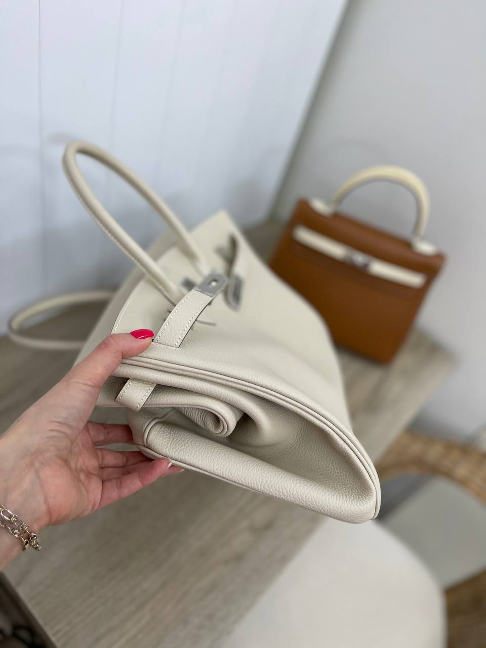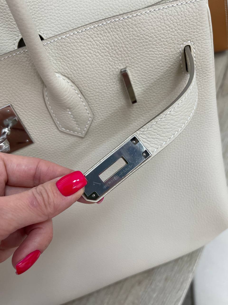 Сумка женская Birkin, 25, PHW Hermes LUX-85678 — это воплощение элегантности и роскоши от известного бренда. Сумка выполнена в кремовом цвете с серебряной фурнитурой, имеет классический дизайн и может стать прекрасным дополнением к любому образу. Она идеально подходит для повседневного использования, а также для особых случаев.