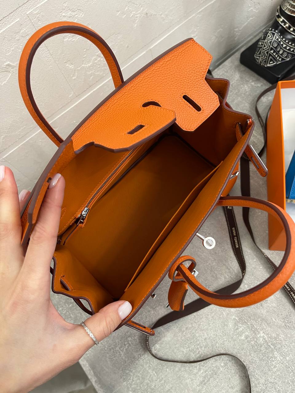 Сумка женская Birkin 25, PHW Togo Hermes LUX-101478 - это воплощение элегантности и роскоши. Яркий оранжевый цвет придает изделию выразительность, а узнаваемый силуэт Birkin делает его узнаваемым. Эта сумка станет идеальным аксессуаром для создания стильных образов.