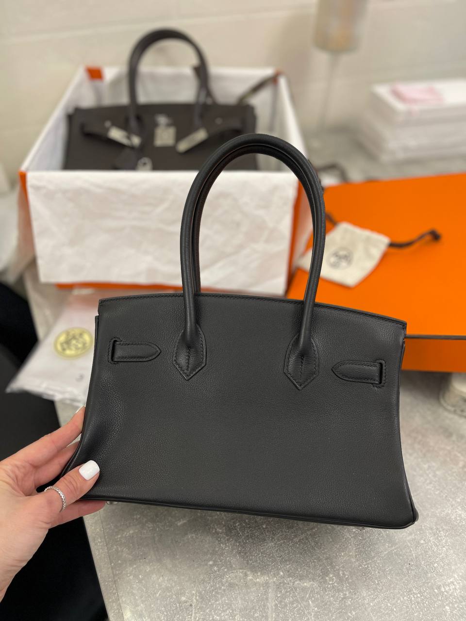 Сумка женская Birkin 27 Hermes LUX-105628 – это элегантная сумка от известного бренда. Она выполнена в классическом стиле и имеет черный цвет. Текстура кожи выглядит гладкой, что придает сумке утонченный вид и делает ее идеальным аксессуаром для различных случаев.