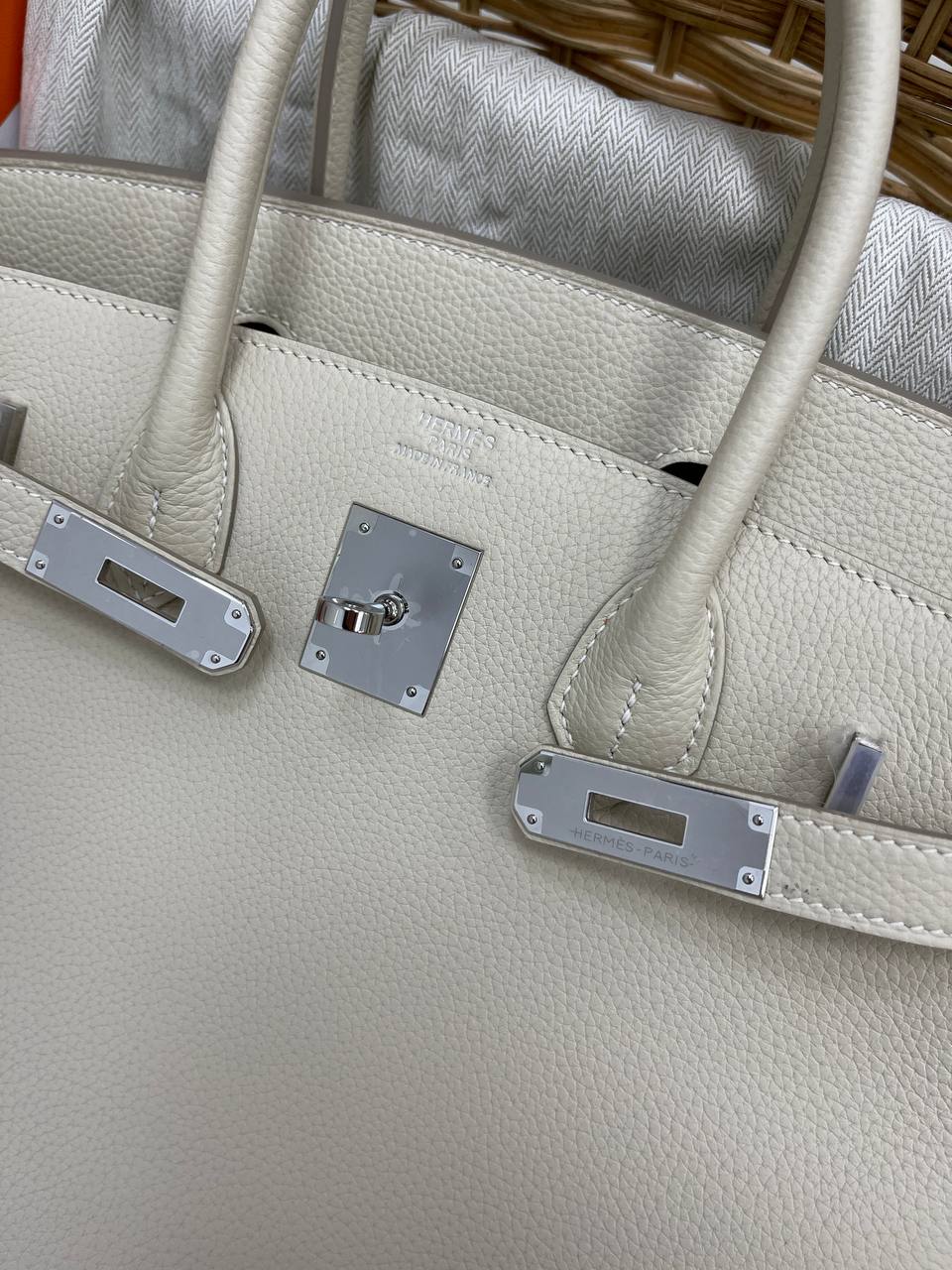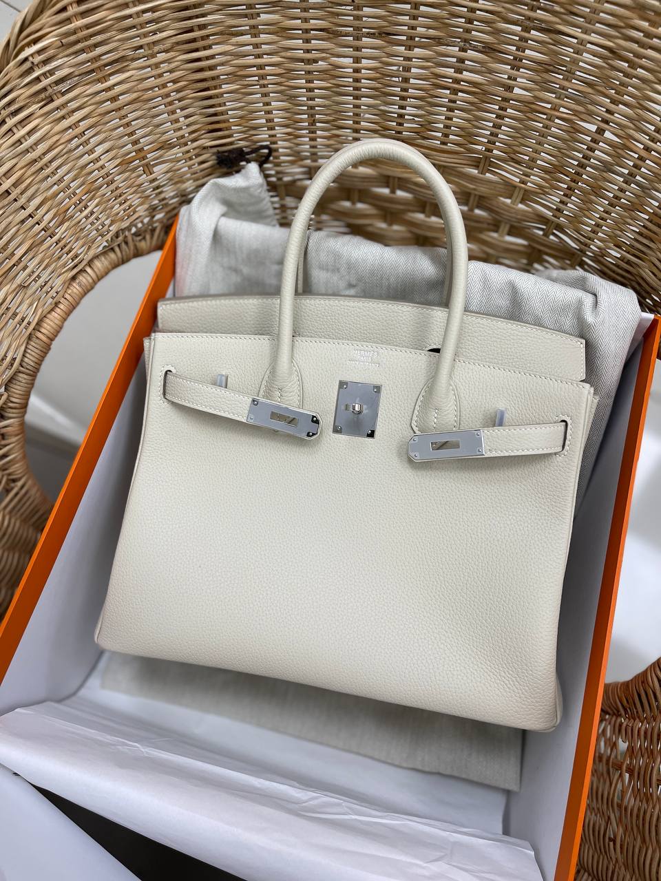 Сумка женская Birkin 30 cm Hermes LUX-84588 — элегантная и стильная модель, воплощающая роскошь и утонченность. Сумка выполнена в классическом стиле, обладает приятной текстурой и нейтральным цветом. Она станет идеальным аксессуаром для повседневной носки, а также для особых случаев.