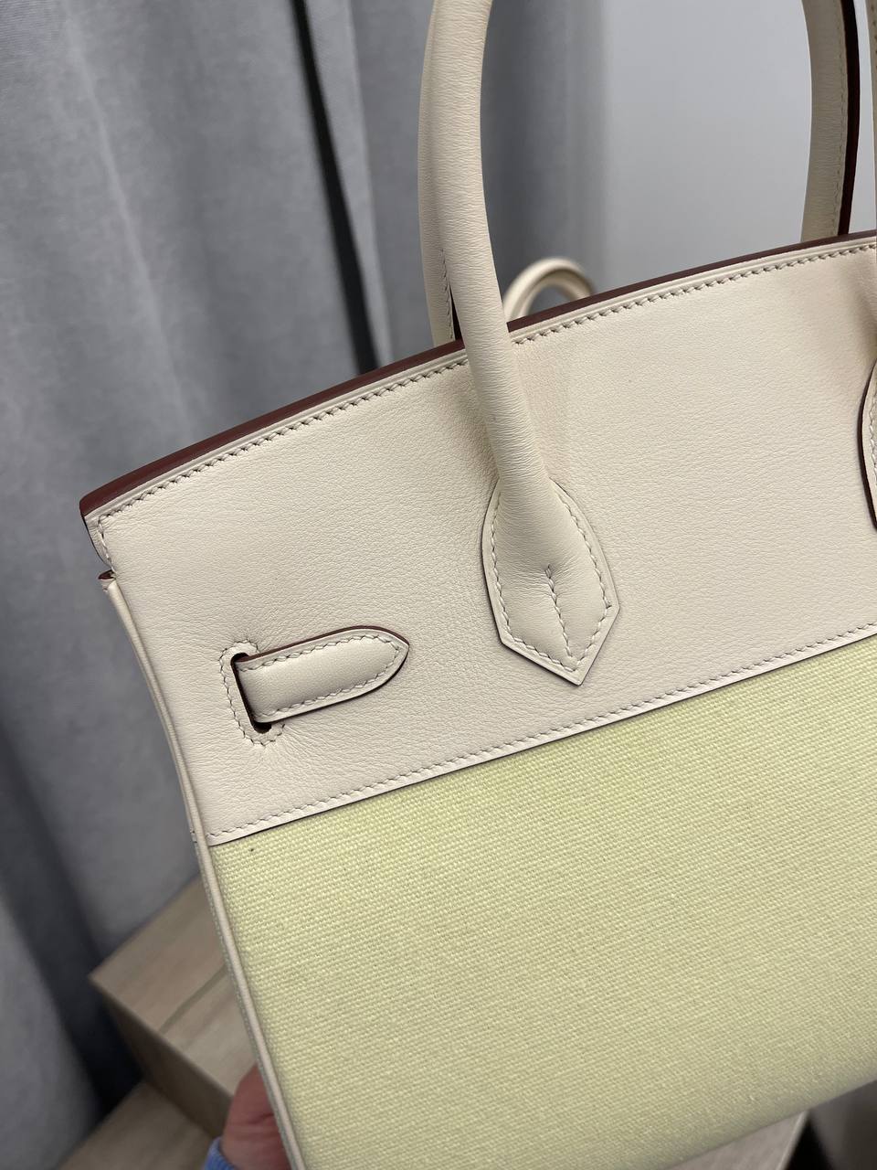 Сумка женская Birkin, 30 cm Hermes LUX-112838 - это стильный аксессуар, выполненный в классическом стиле. Сумка сочетает в себе светлые оттенки белого и кремового цветов с текстурированной отделкой нижней части. Birkin — это сумка для тех, кто ценит элегантность и высокое качество.