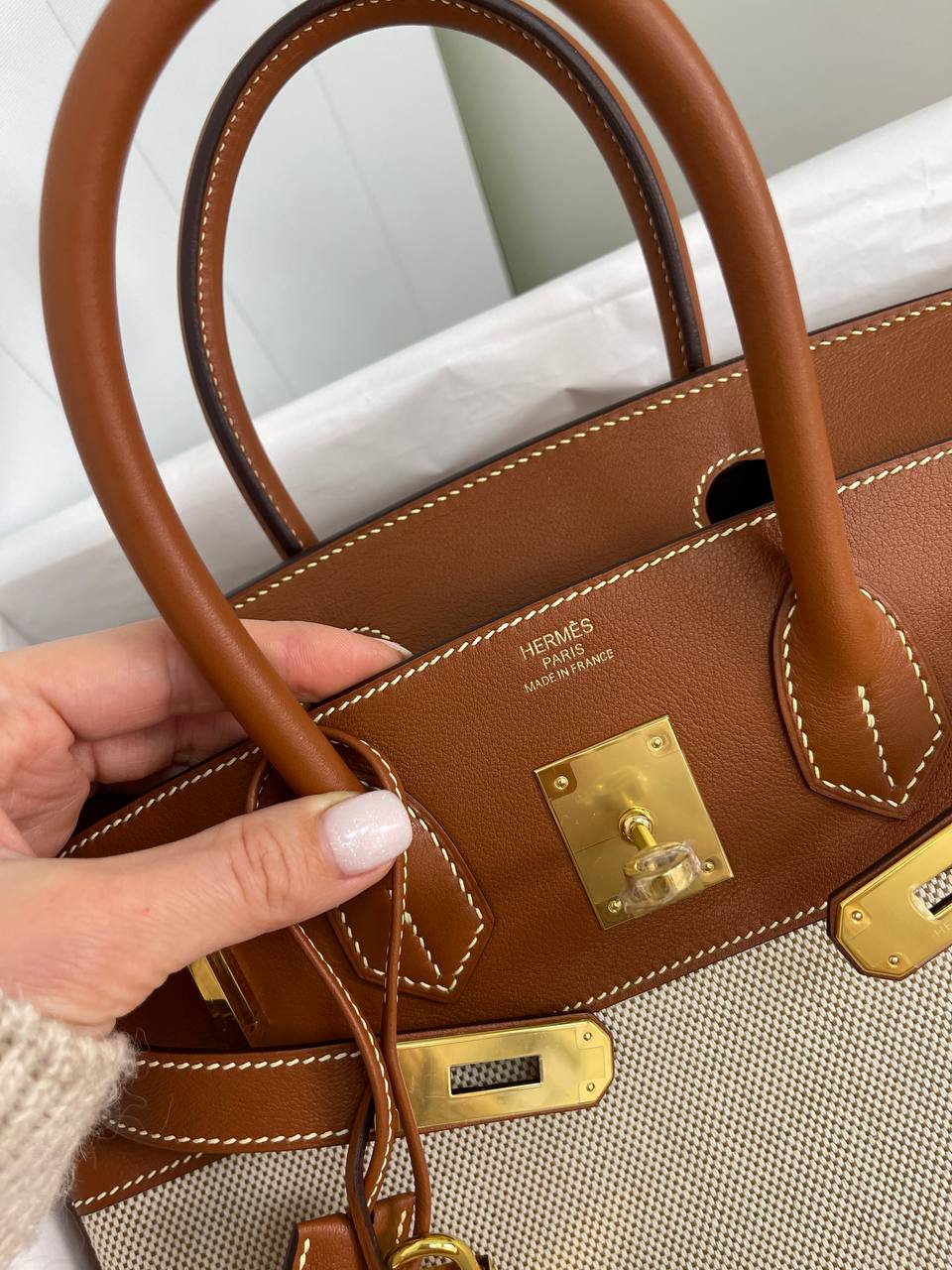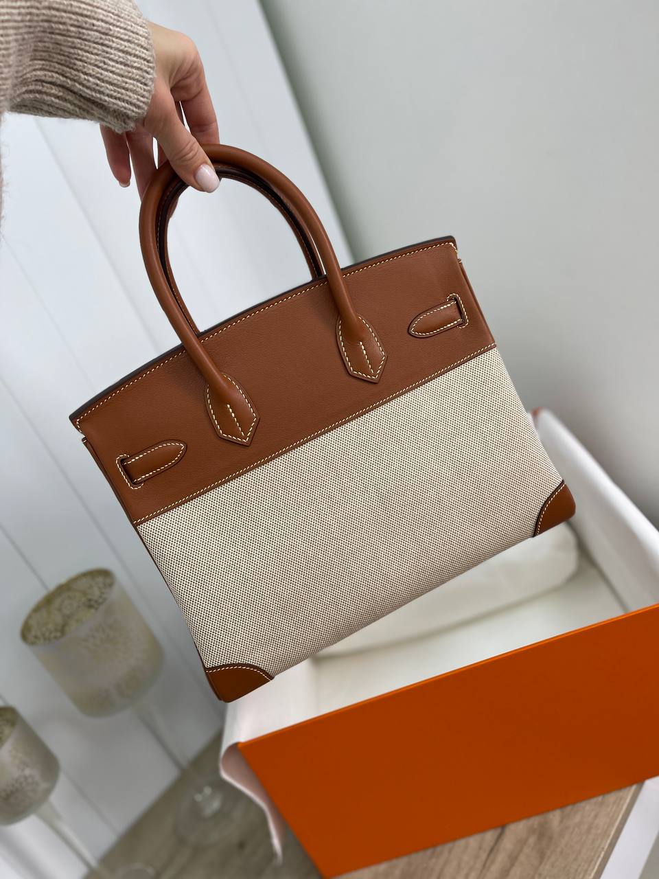 Сумка женская Birkin, 30 cm, GHW Hermes LUX-82896 — это воплощение элегантности и роскоши. Сумка выполнена в классическом стиле, сочетая в себе коричневую кожу и светлый текстиль. Этот аксессуар станет идеальным дополнением к любому образу.