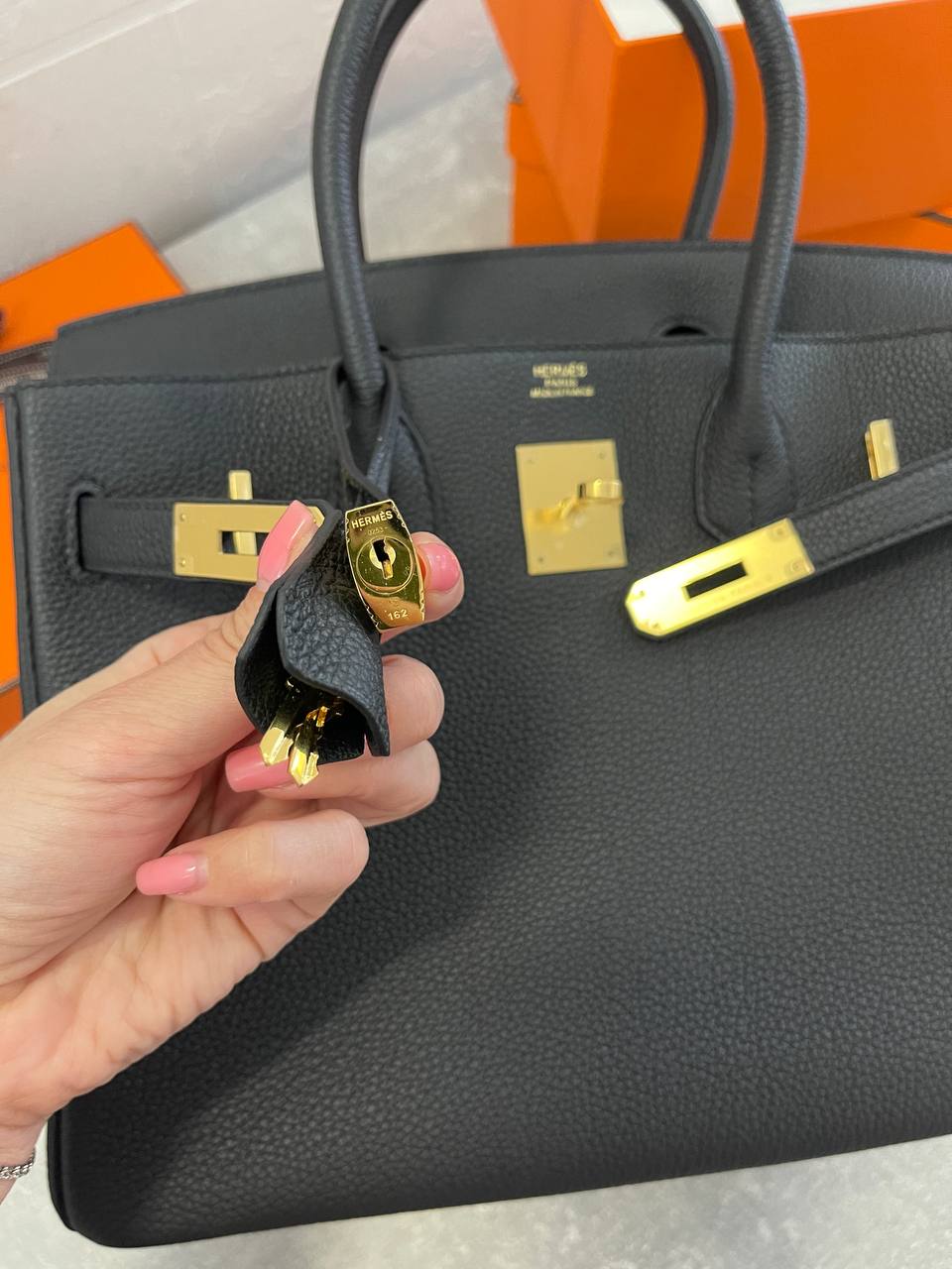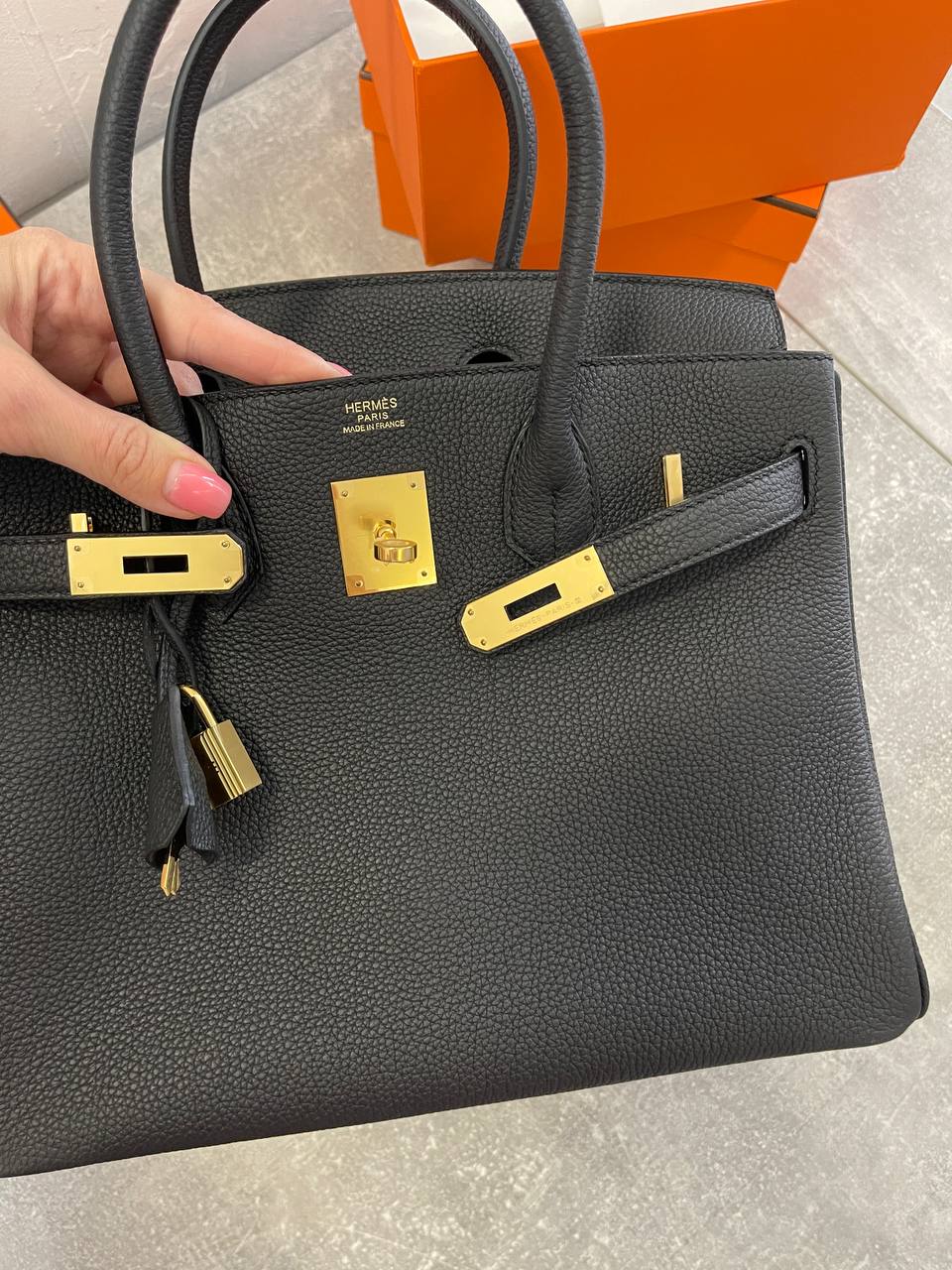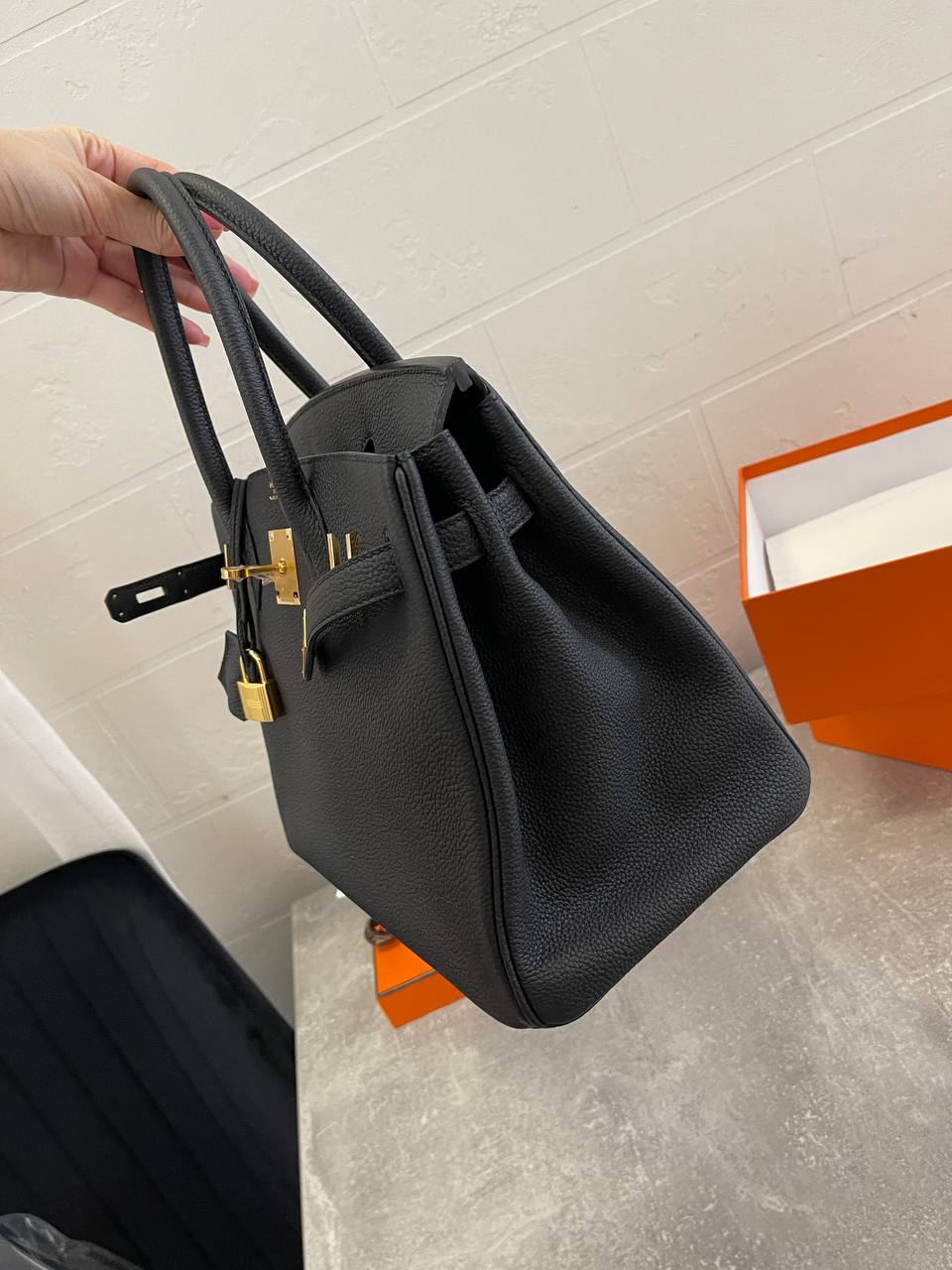 Сумка женская Birkin 30 Fjord Leather Hermes LUX-110090, воплощение элегантности и роскоши. Эта черная сумка из текстурированной кожи, идеально подходит для повседневного использования и особых случаев.