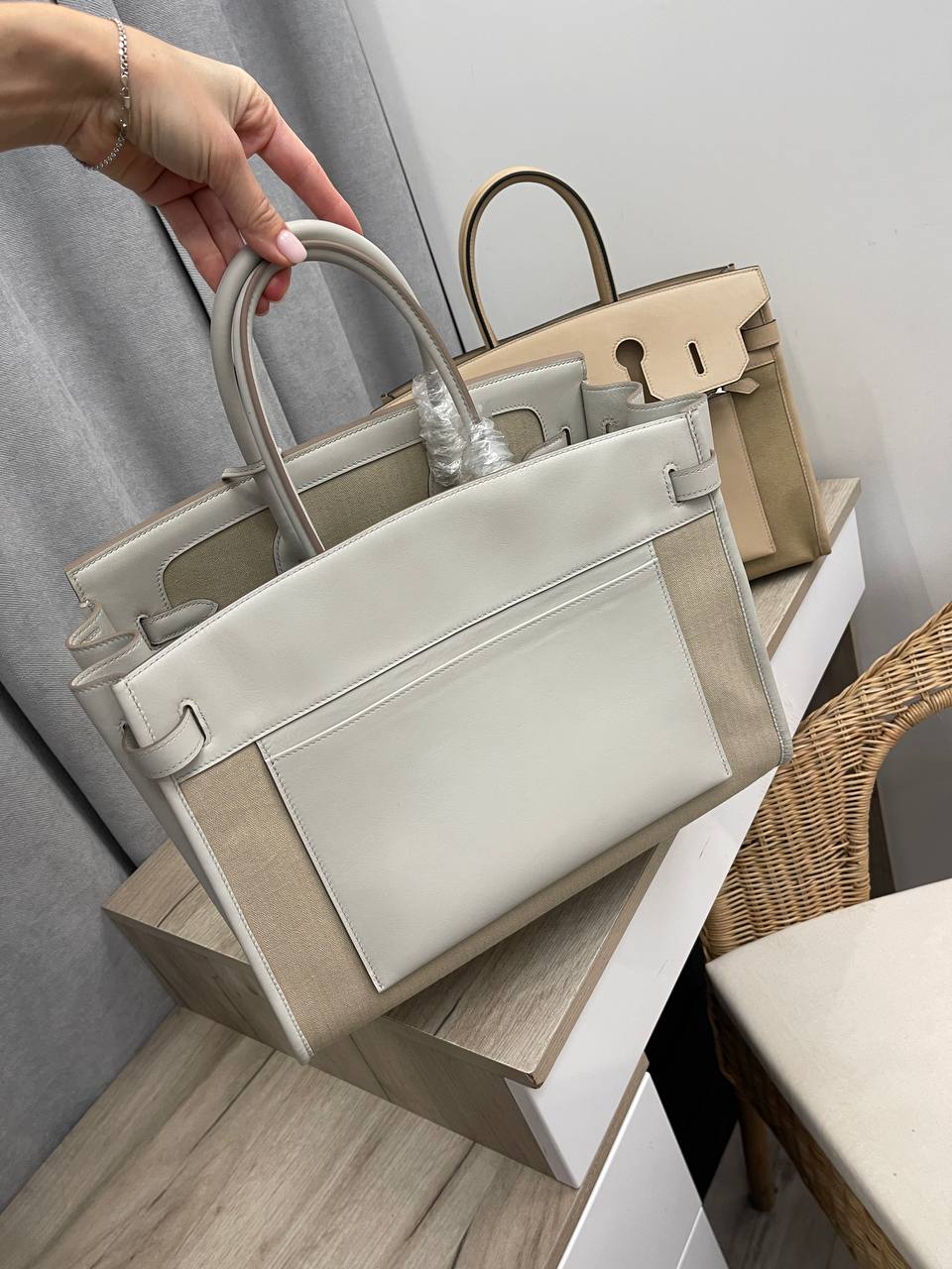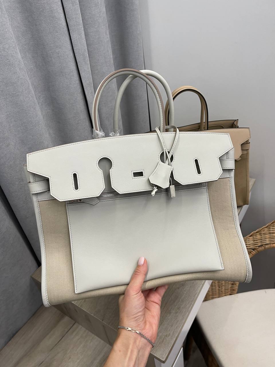 Сумка женская Birkin 35 cm Hermes LUX-112755 представляет собой стильный аксессуар от Hermes. Сумка выполнена в элегантном дизайне, сочетающем в себе элементы классики и современности. Светлая цветовая гамма придает сумке изысканный вид, делая ее подходящей для различных образов и событий.