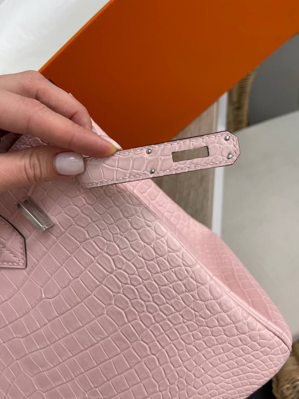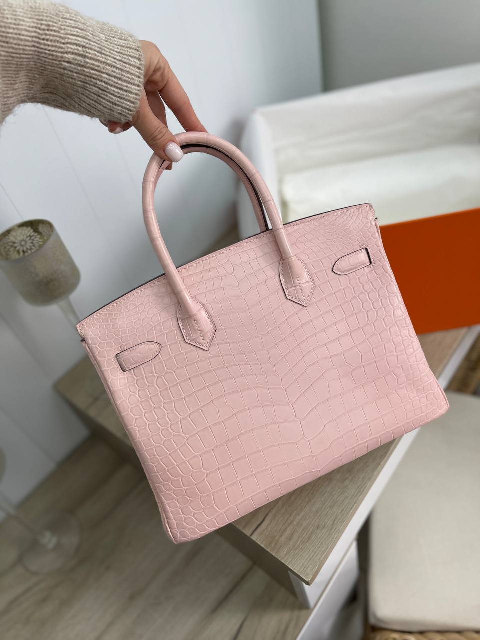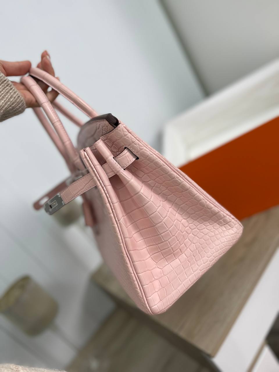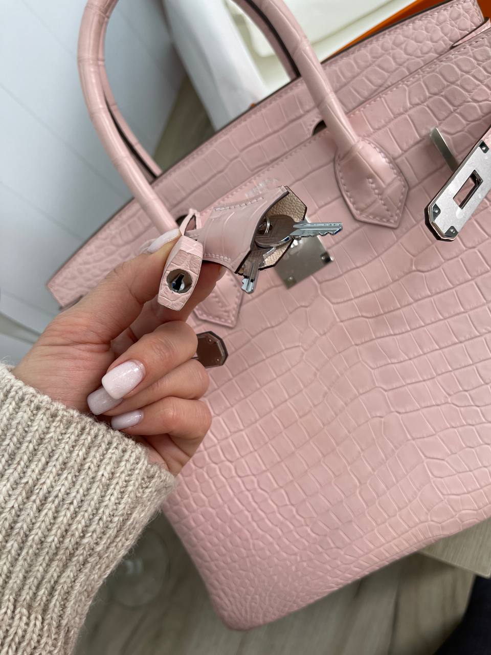 Сумка женская Birkin Crocodile 30 cm Hermes LUX-82887 – это воплощение роскоши и элегантности, выполненная в нежном розовом цвете. Сумка выполнена в классическом стиле и имеет текстуру, имитирующую кожу крокодила. Она станет прекрасным дополнением к любому образу.