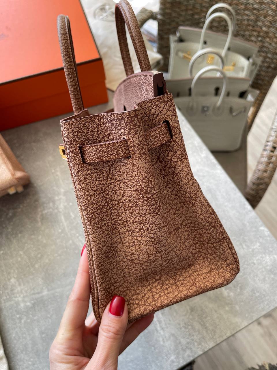 Сумка женская Birkin Dalmatien 25 cm Hermes LUX-116955 - это элегантная сумка от Hermes, выполненная в классическом стиле Birkin. Она представляет собой модель с двумя короткими ручками и узнаваемым дизайном застежки с золотистой фурнитурой. Сумка имеет уникальную текстуру и цвет, что делает ее выдающимся аксессуаром.
