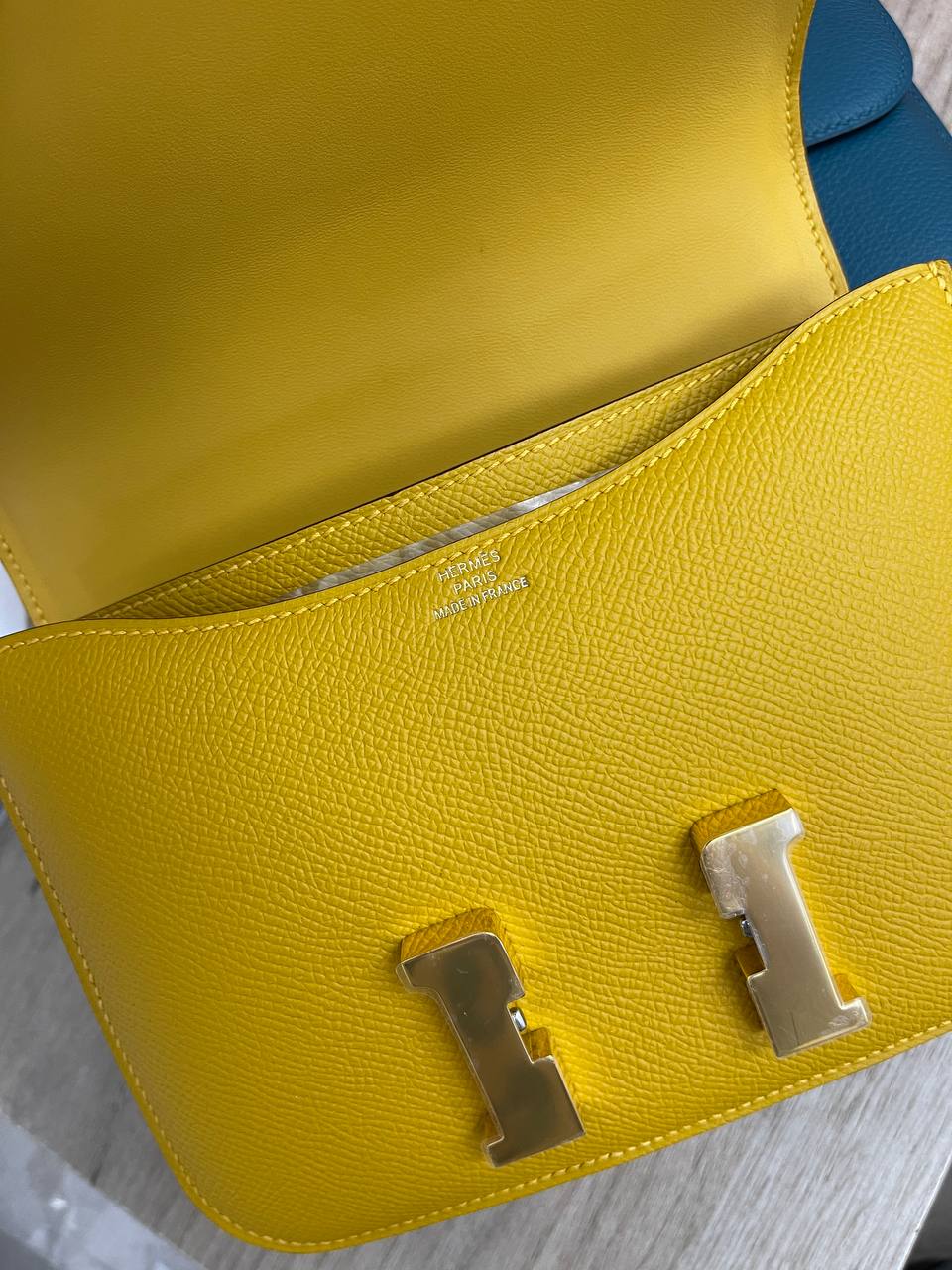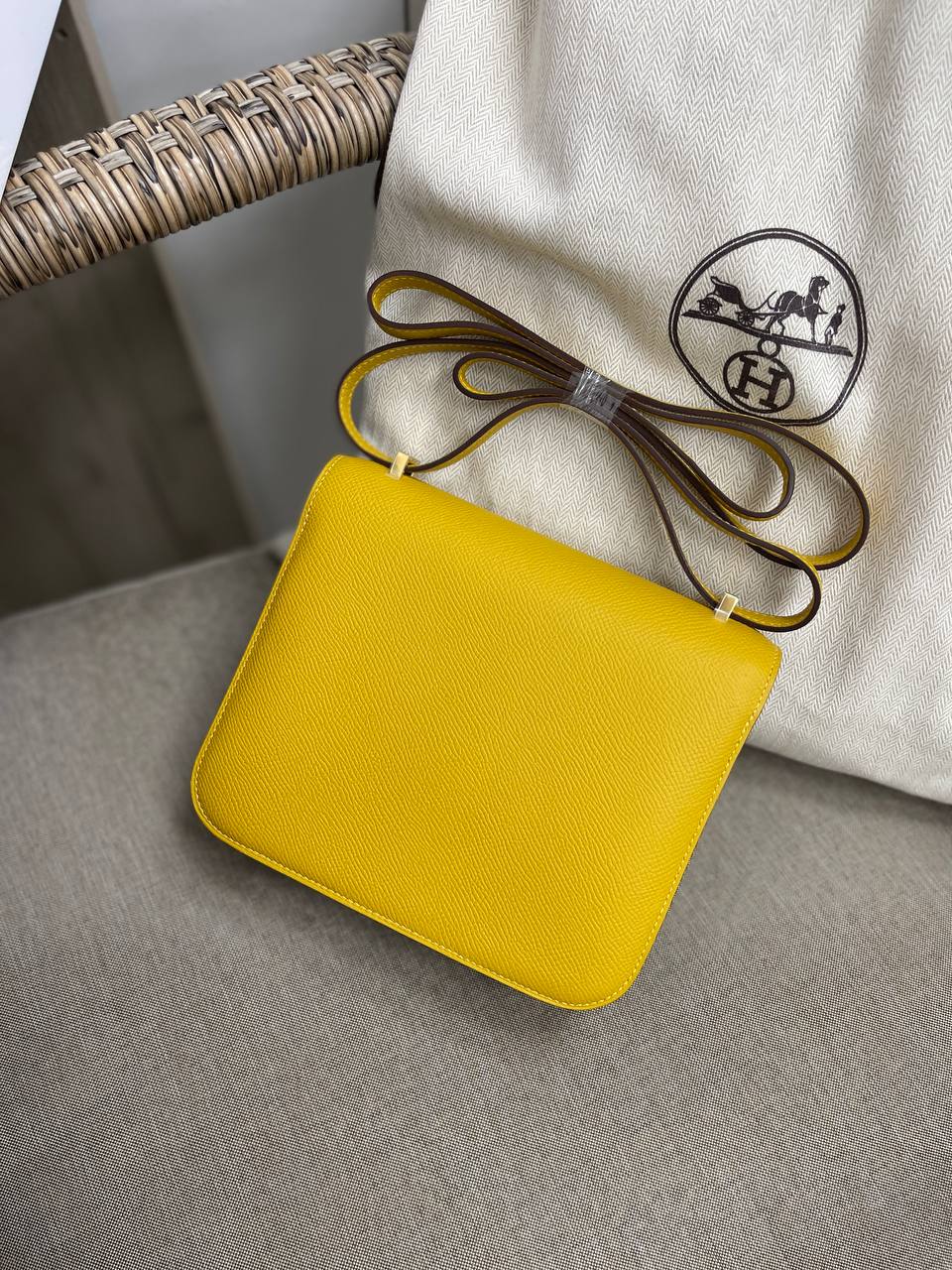 Сумка женская Conctance 18 cm Hermes LUX-86285 выполнена в ярком солнечно-желтом цвете, что придает ей неповторимый стиль. Эта элегантная сумка через плечо, идеальна для создания запоминающихся образов. Акцент - золотистая фурнитура, которая добавляет роскоши и завершенности.