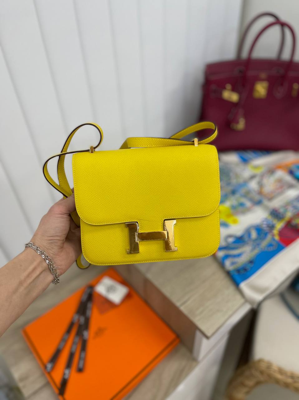 Женская сумка Hermes Conctance 18 cm, Epsom LUX-65348, выполнена в классическом, но при этом ярком стиле. Ее насыщенный желтый цвет и элегантная форма делают ее заметным аксессуаром. Сумка идеально подходит для создания утонченных и изысканных образов, подчеркивая статус и хороший вкус владелицы.