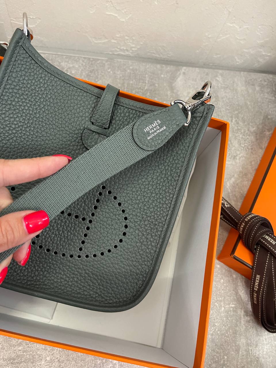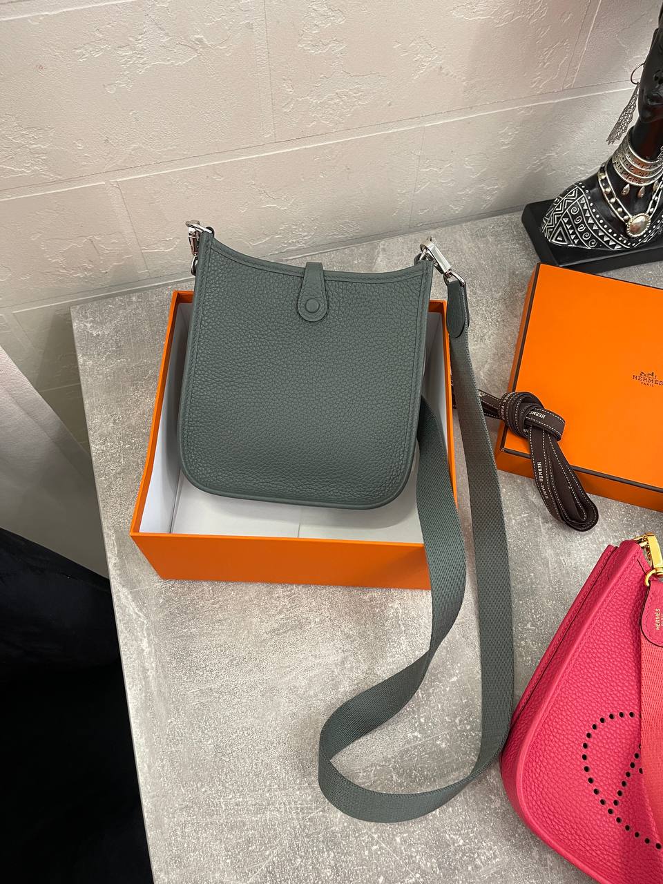 Сумка женская Evelyne mini Hermes LUX-108593 — элегантная сумка через плечо, сочетающая в себе классический стиль и современный дизайн. Выполнена в сером цвете, текстура сумки придает ей особый шарм. Эта сумка станет идеальным аксессуаром для повседневного использования.