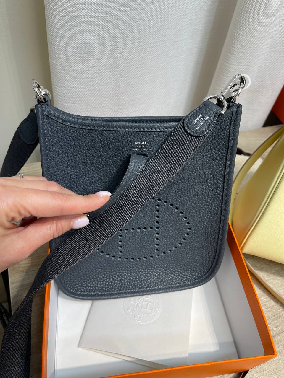 Стильная женская сумка через плечо Hermes Evelyne mini - это элегантный аксессуар, который подчеркнет ваш безупречный вкус. Идеально подходит для повседневного использования, добавляя изысканности любому образу.