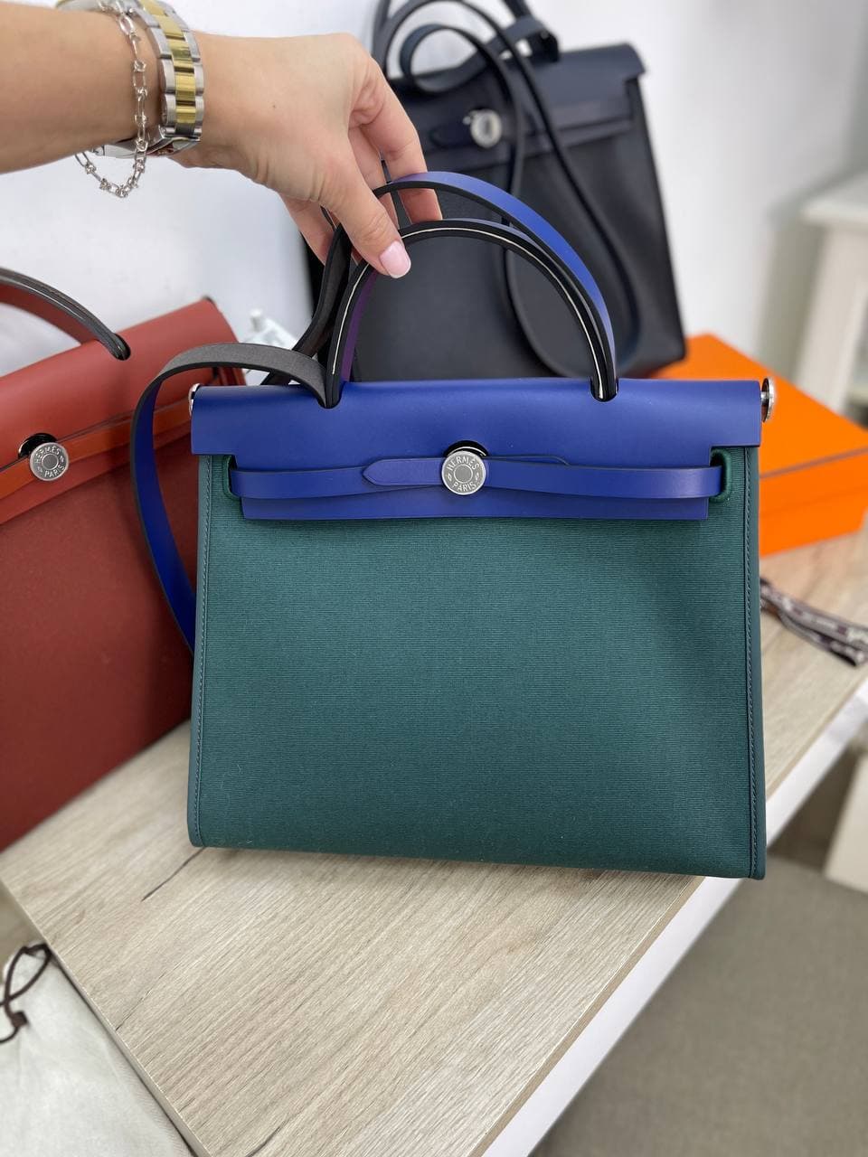 Эта женская сумка Hermes Herbag сочетает в себе элегантность и практичность. Сочетание текстильного корпуса и кожаных элементов придает ей уникальный вид. Ее классическая форма делает ее универсальным аксессуаром, который подойдет для любого случая.
