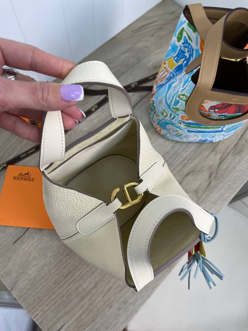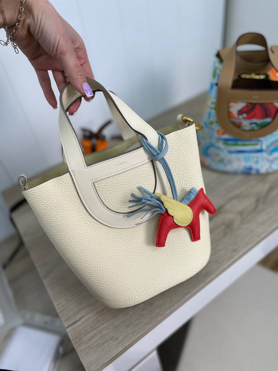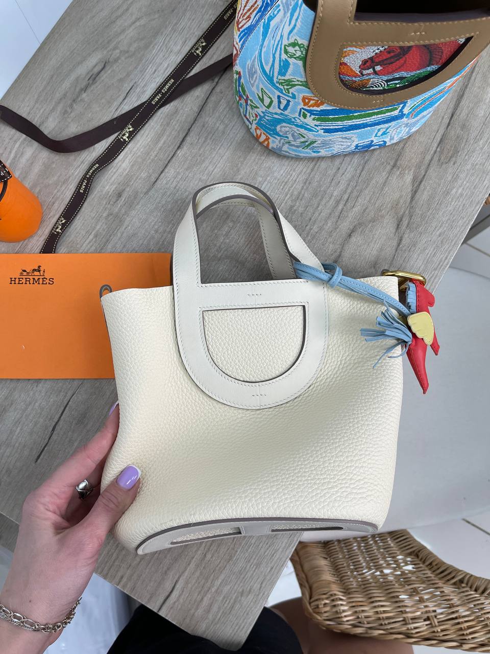 Сумка женская In-the-Loop Hermes LUX-88615 выполнена в элегантном стиле. Сумка имеет круглую форму и мягкую текстуру, что придает ей изысканный вид. Сумка представлена в молочном цвете, дополненная оригинальным аксессуаром-брелоком в виде лошадки.