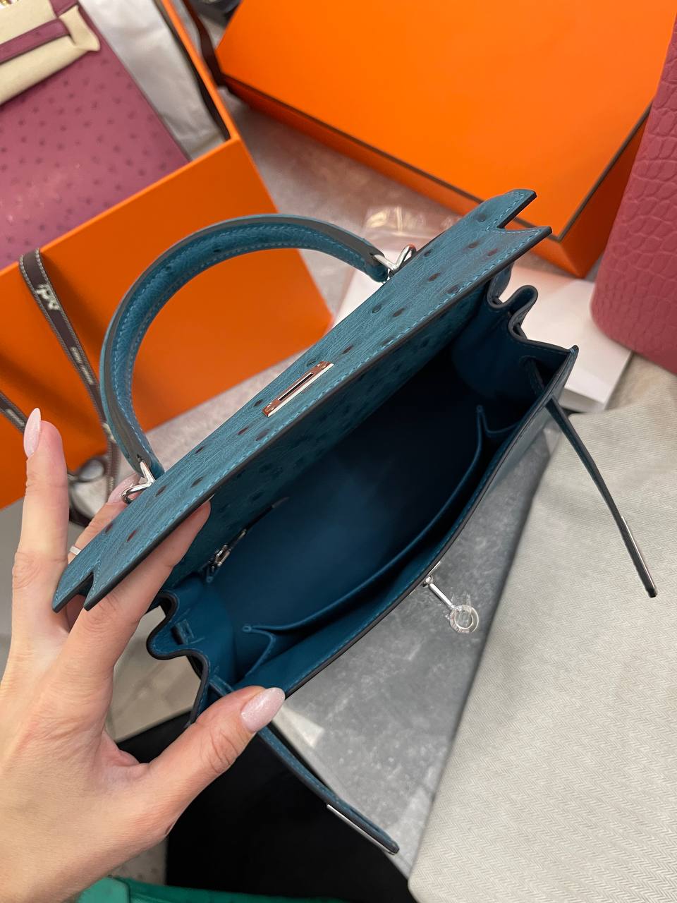 Сумка женская Kelly, 25 cm Ostrich PHW Hermes LUX-95424