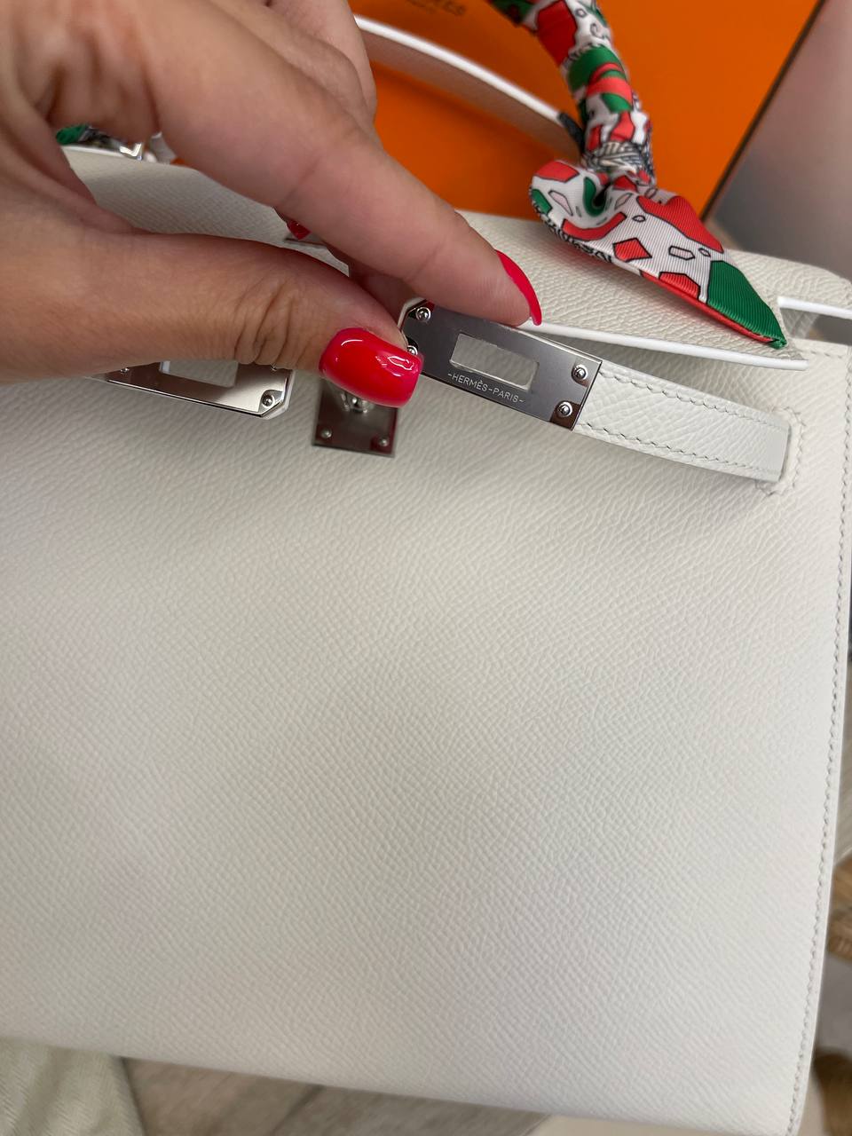 Сумка женская Kelly, 25 Epsom Hermes LUX-108148 - это классическая сумка от Hermes, выполненная в элегантном стиле. Сумка имеет белый цвет и текстурированную поверхность, что придает ей изысканный вид. Она подходит для повседневного использования и особых случаев.