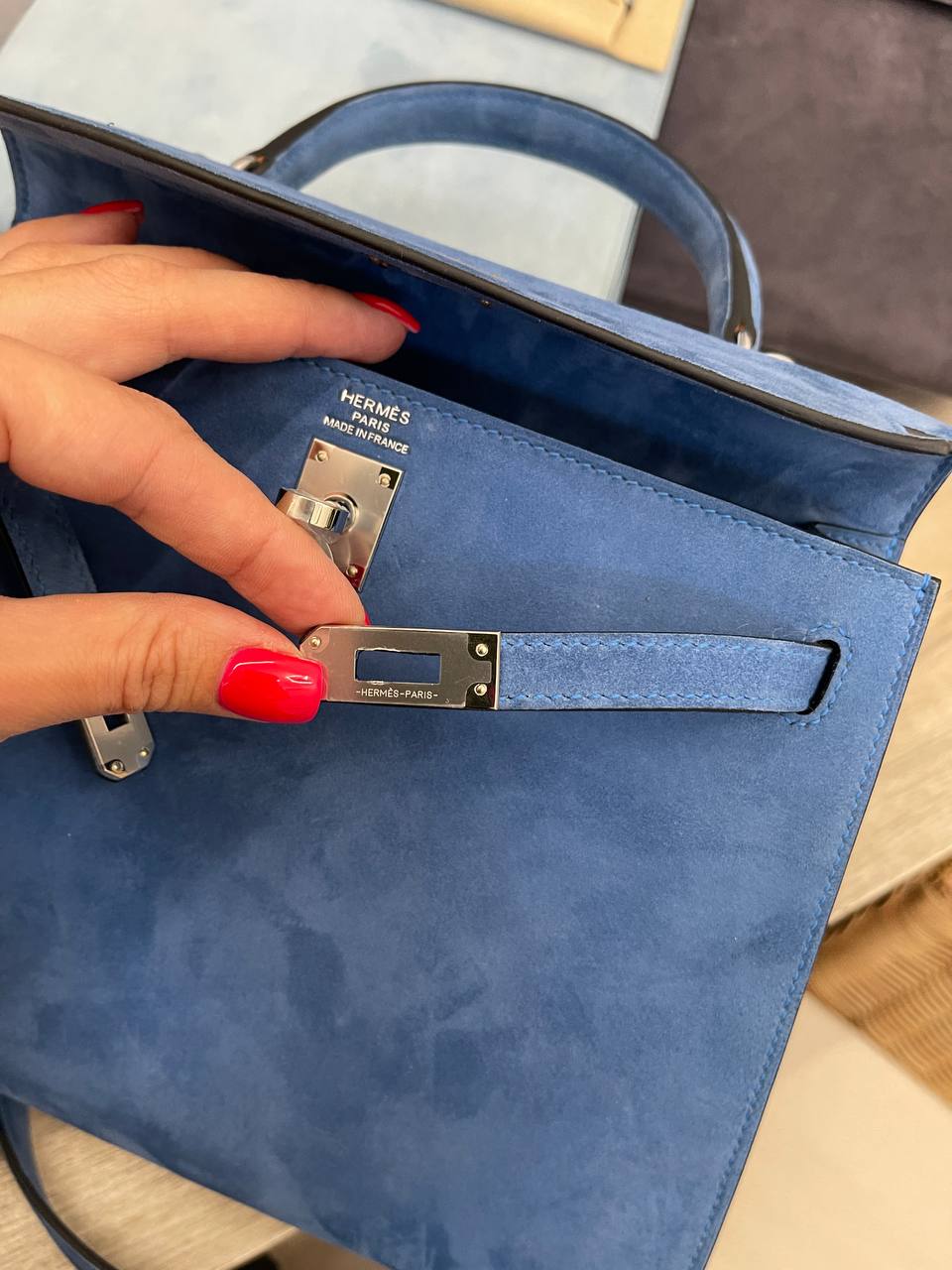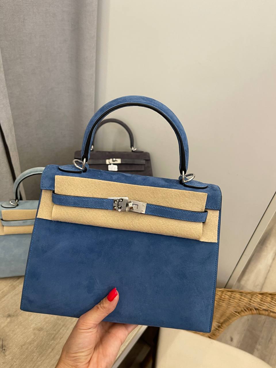 Сумка женская Kelly, 25 PHW Hermes LUX-108409 — воплощение элегантности и роскоши. Сумка выполнена в насыщенном синем цвете, имеет мягкую бархатистую текстуру, создающую ощущение комфорта и премиальности. Этот аксессуар идеально подойдет для создания изысканных образов в повседневной жизни или на особых мероприятиях.