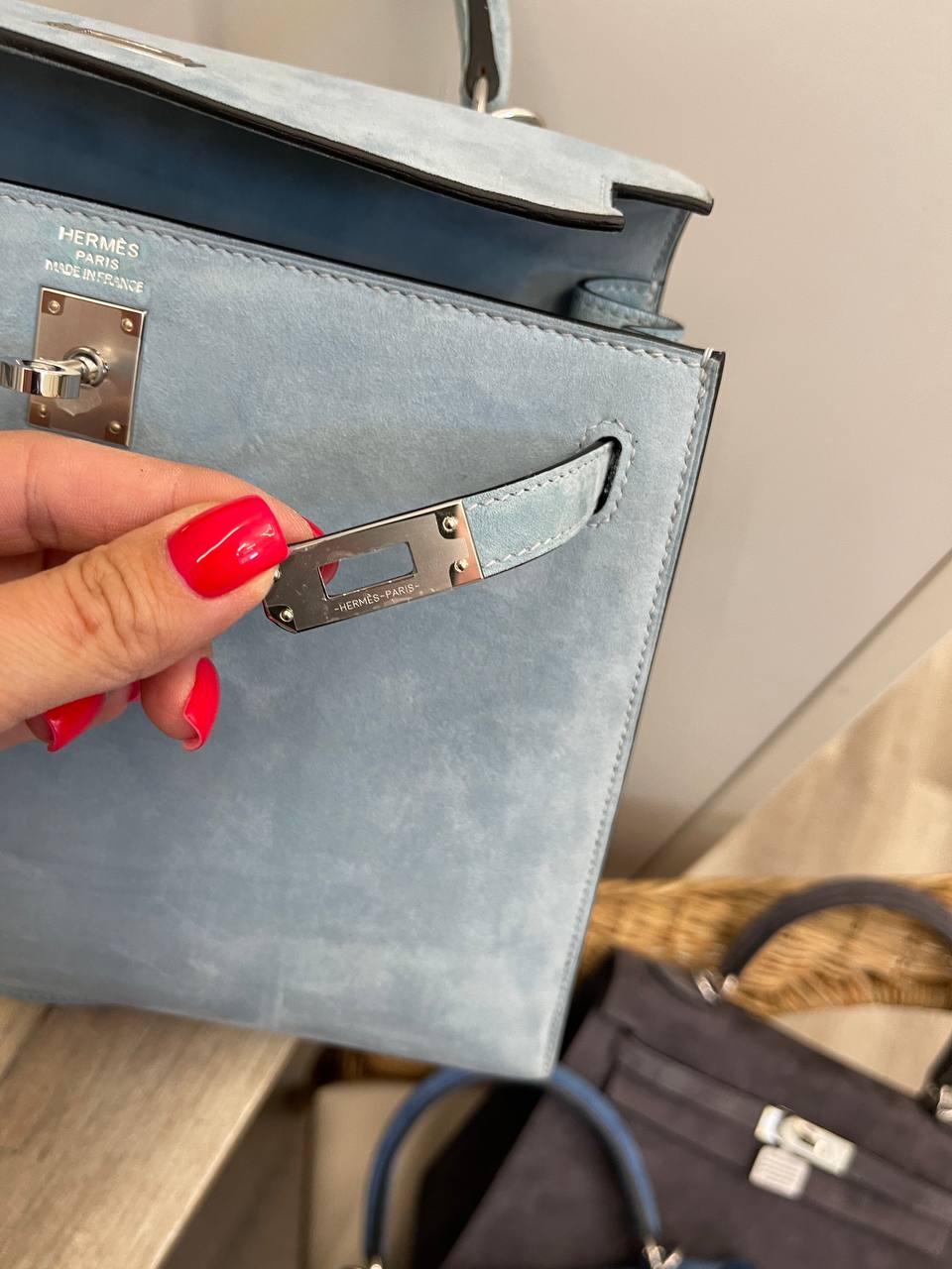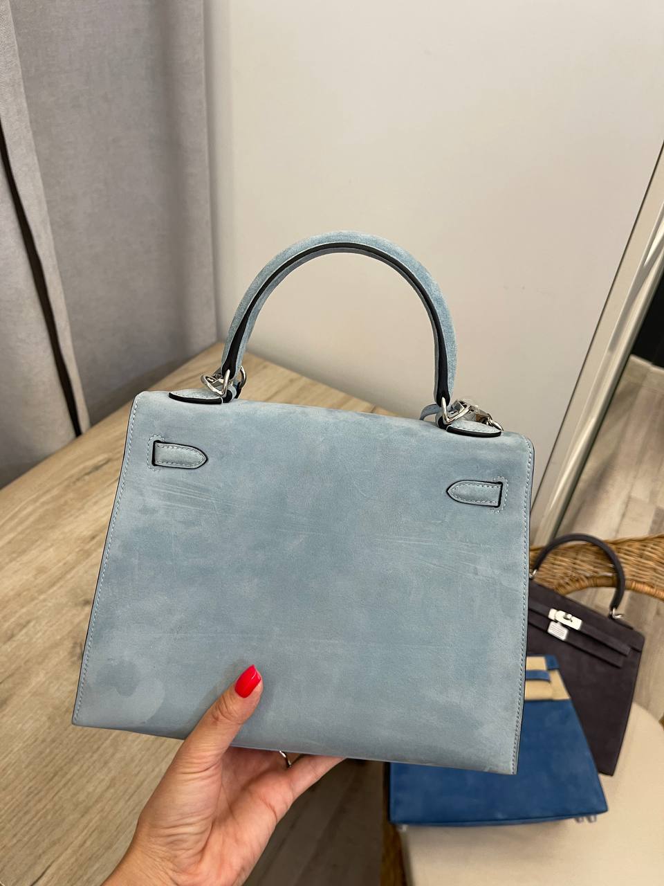 Сумка женская Kelly, 25 PHW Hermes LUX-108410 — воплощение элегантности и стиля от известного бренда. Сумка выполнена в нежном голубом цвете, имеет замшевую текстуру. Этот аксессуар станет идеальным дополнением к любому образу, подчеркивая изысканный вкус своей обладательницы.