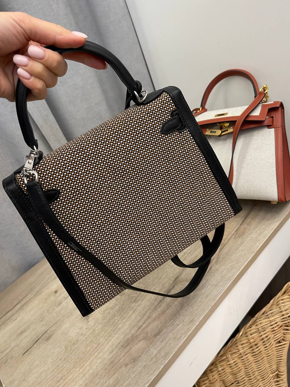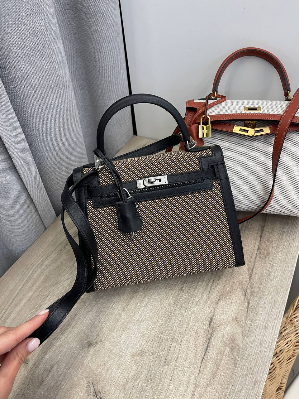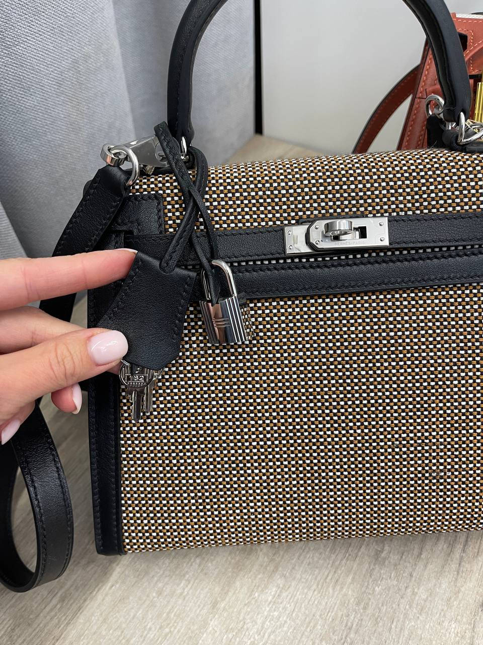 Сумка женская Kelly, 25, PHW Hermes LUX-112760 - это элегантная сумка от Hermes, выполнена в классическом стиле. Сумка имеет контрастные элементы черного цвета, а также текстурированную основу в бежево-коричневых тонах. Она может быть использована как в повседневной жизни, так и для особых случаев.