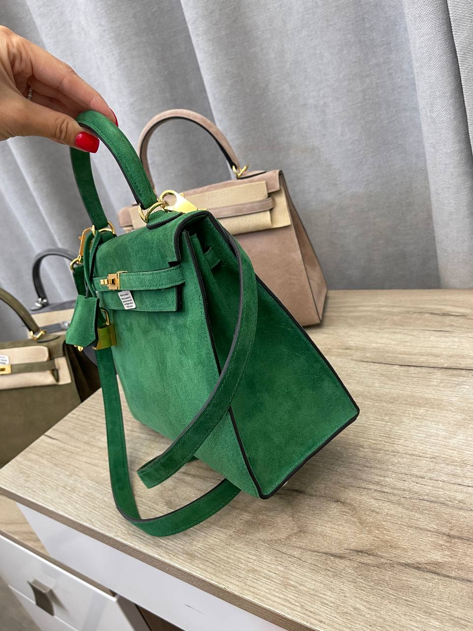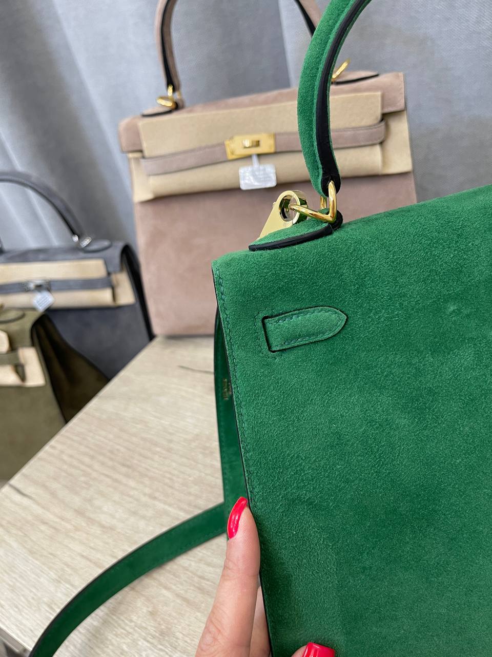 Сумка женская Kelly, 25 PHW Hermes LUX-108403 — это воплощение элегантности и стиля. Яркий изумрудный цвет и мягкая текстура замши создают роскошный образ. Эта сумка станет прекрасным дополнением к любому наряду, подчеркивая индивидуальность своей обладательницы.