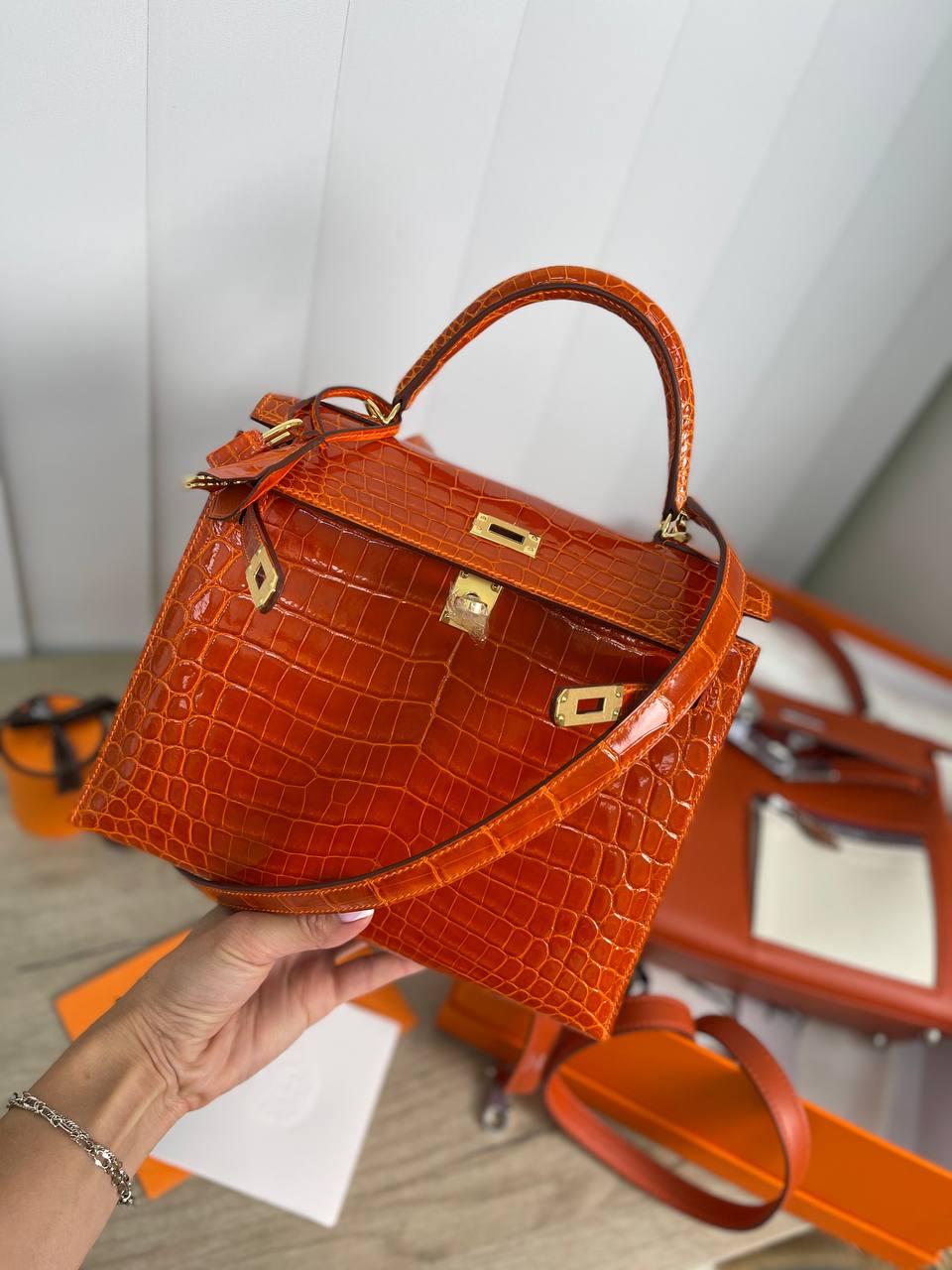 Сумка женская Kelly 25 см, GHW Hermes LUX-81804 — это элегантный аксессуар для женщин. Данная модель выполнена в классическом стиле и имеет насыщенный оранжевый цвет с текстурой под крокодиловую кожу. Она идеально подходит для создания изысканных образов.